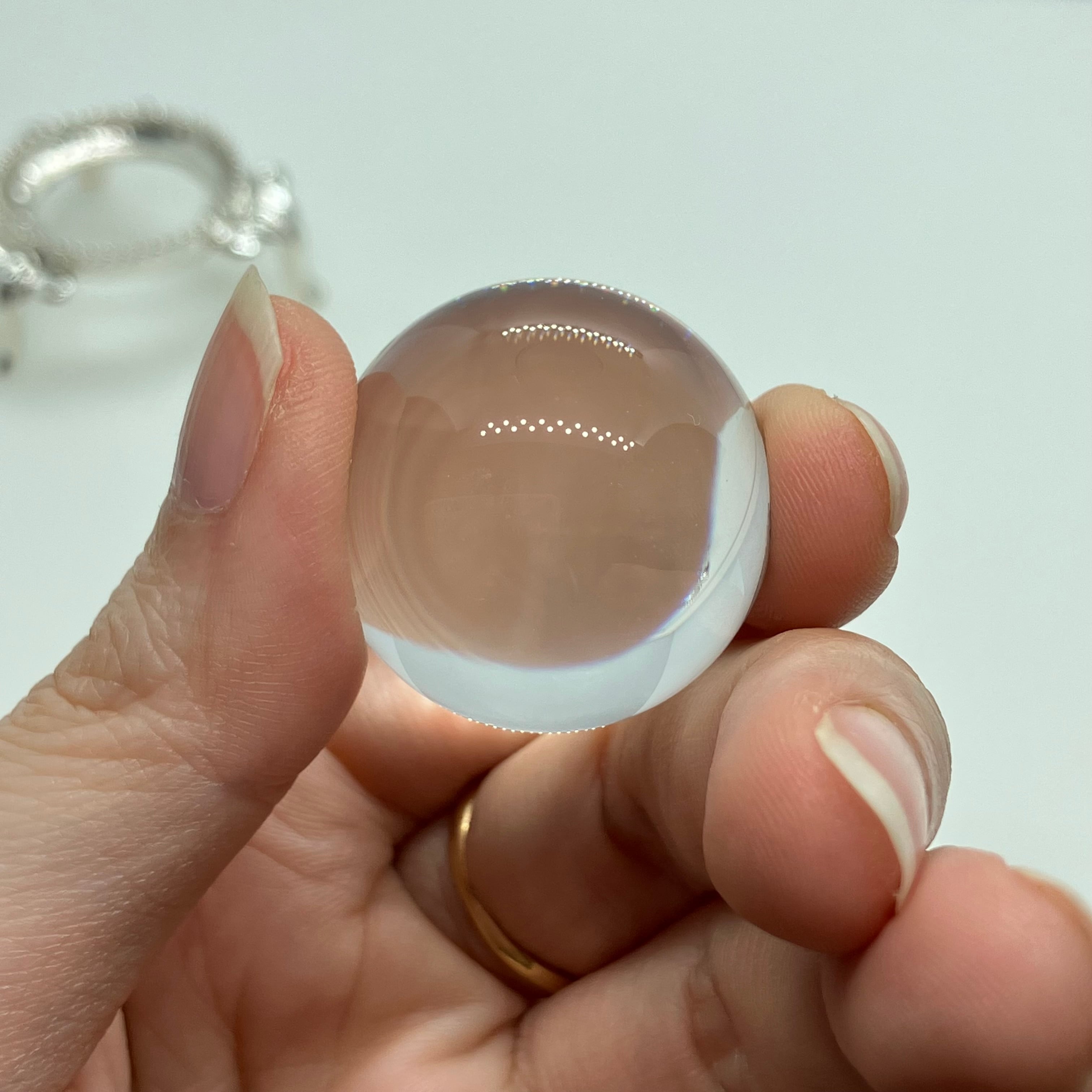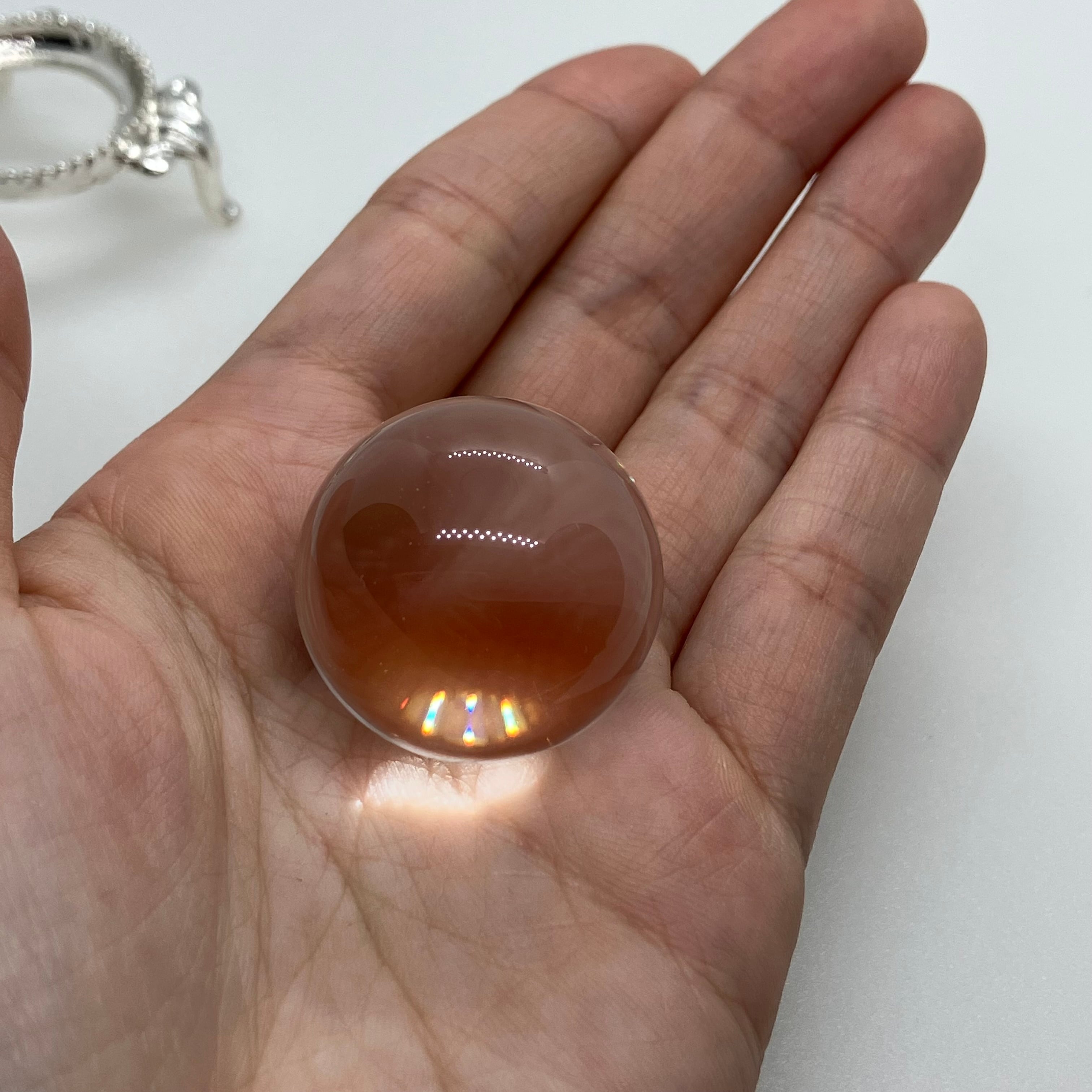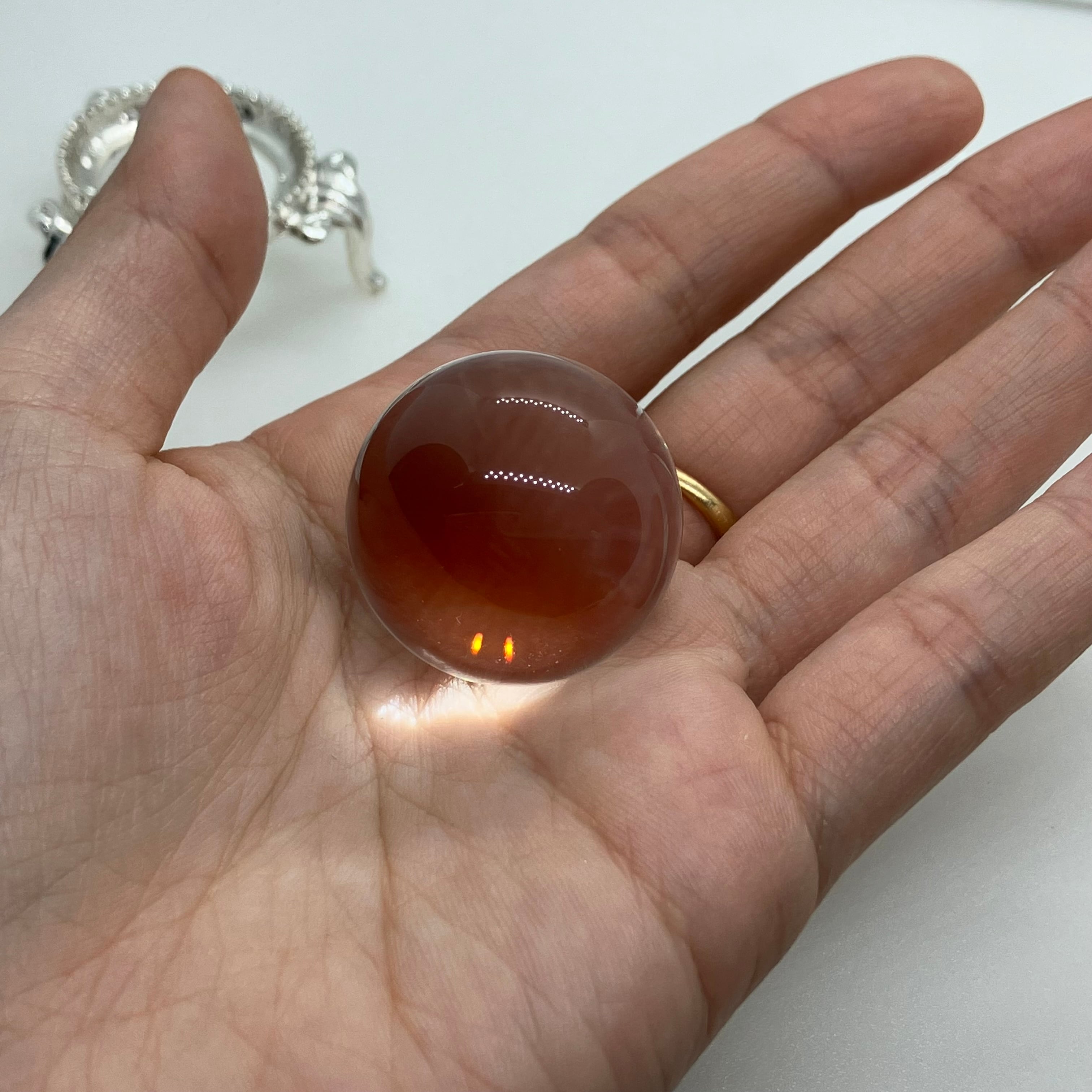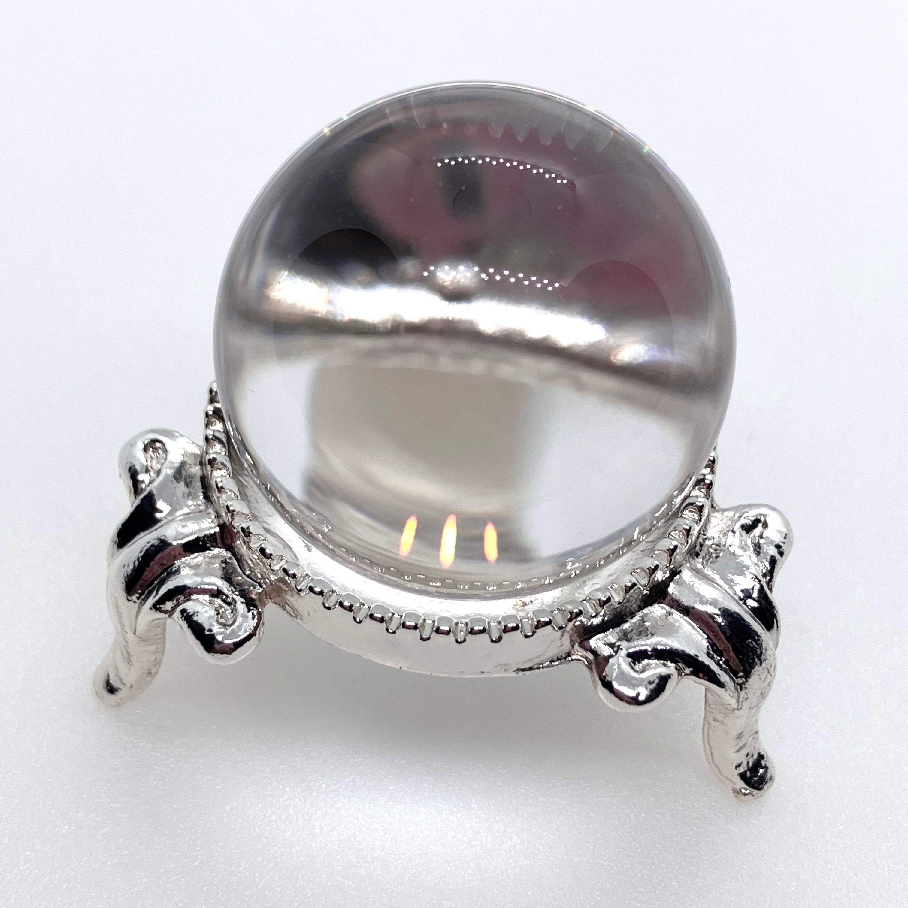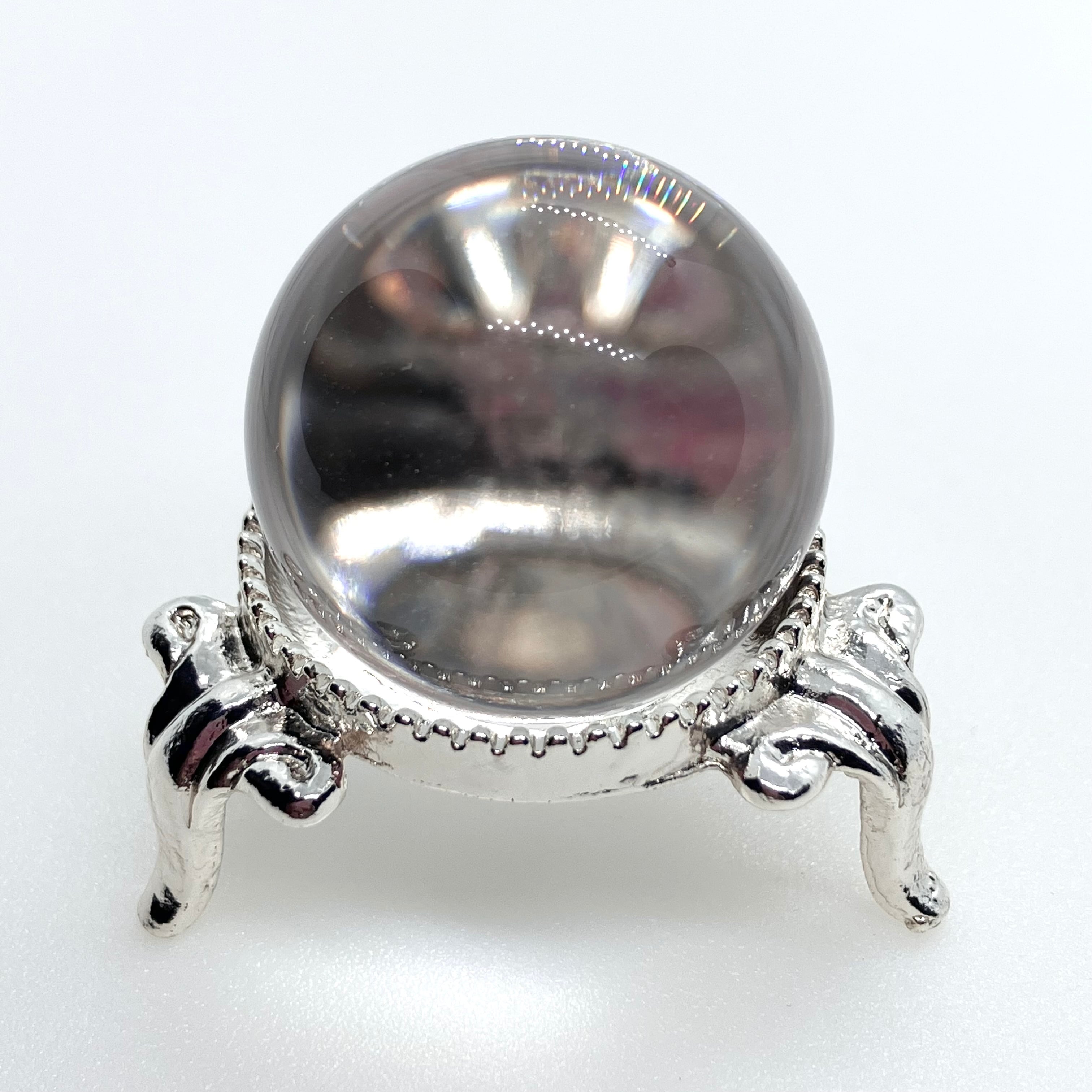 水晶は特に浄化法なども選ばない石ですが、丸玉の場合レンズ効果により光を集め、熱を持つ作用があります(太陽光の下で虫眼鏡で火が付くのと同じです)。