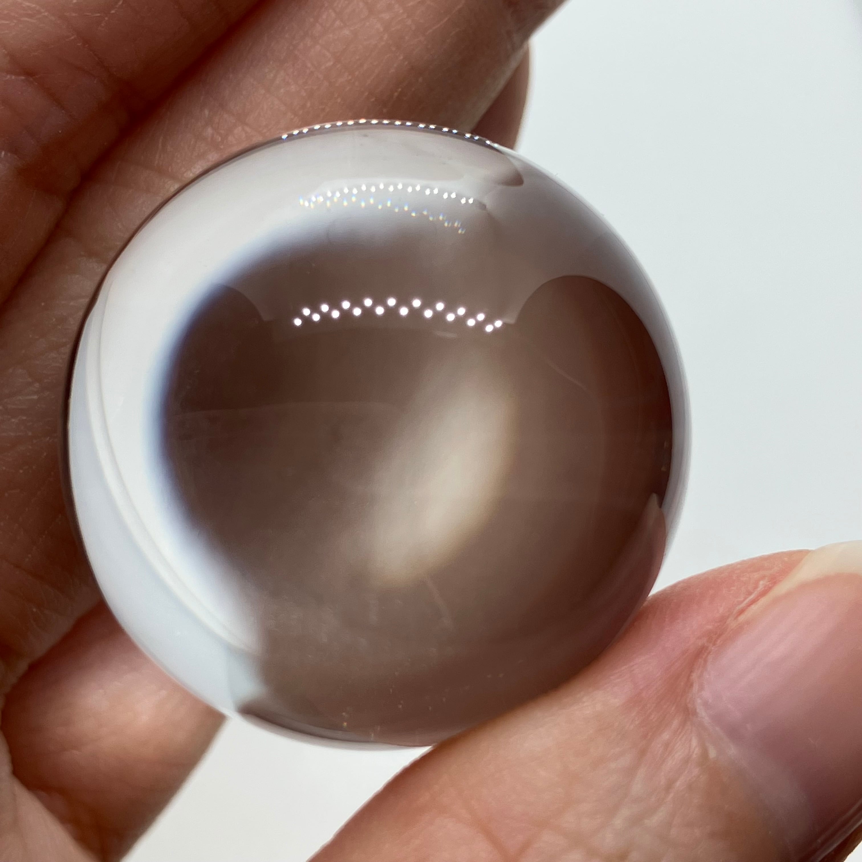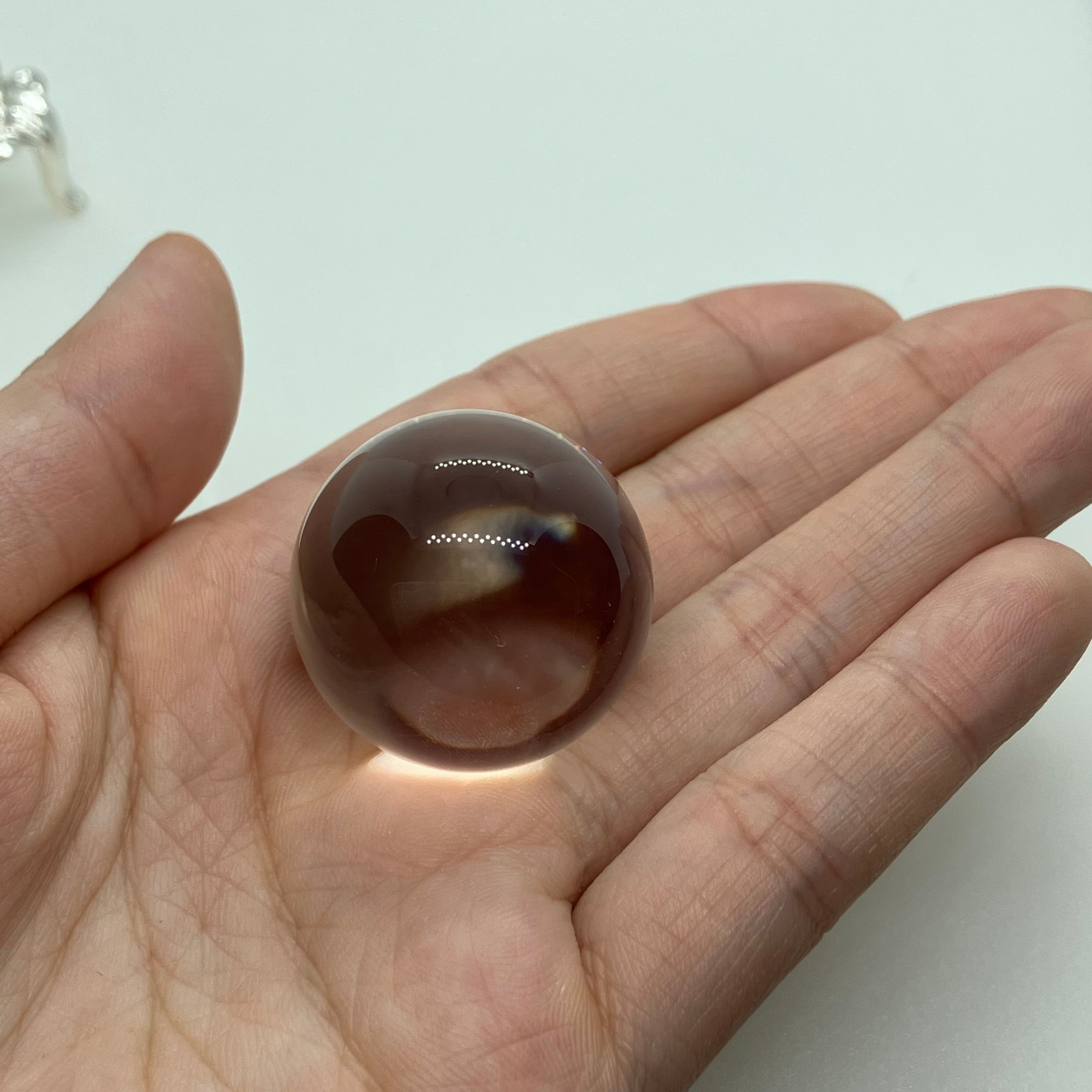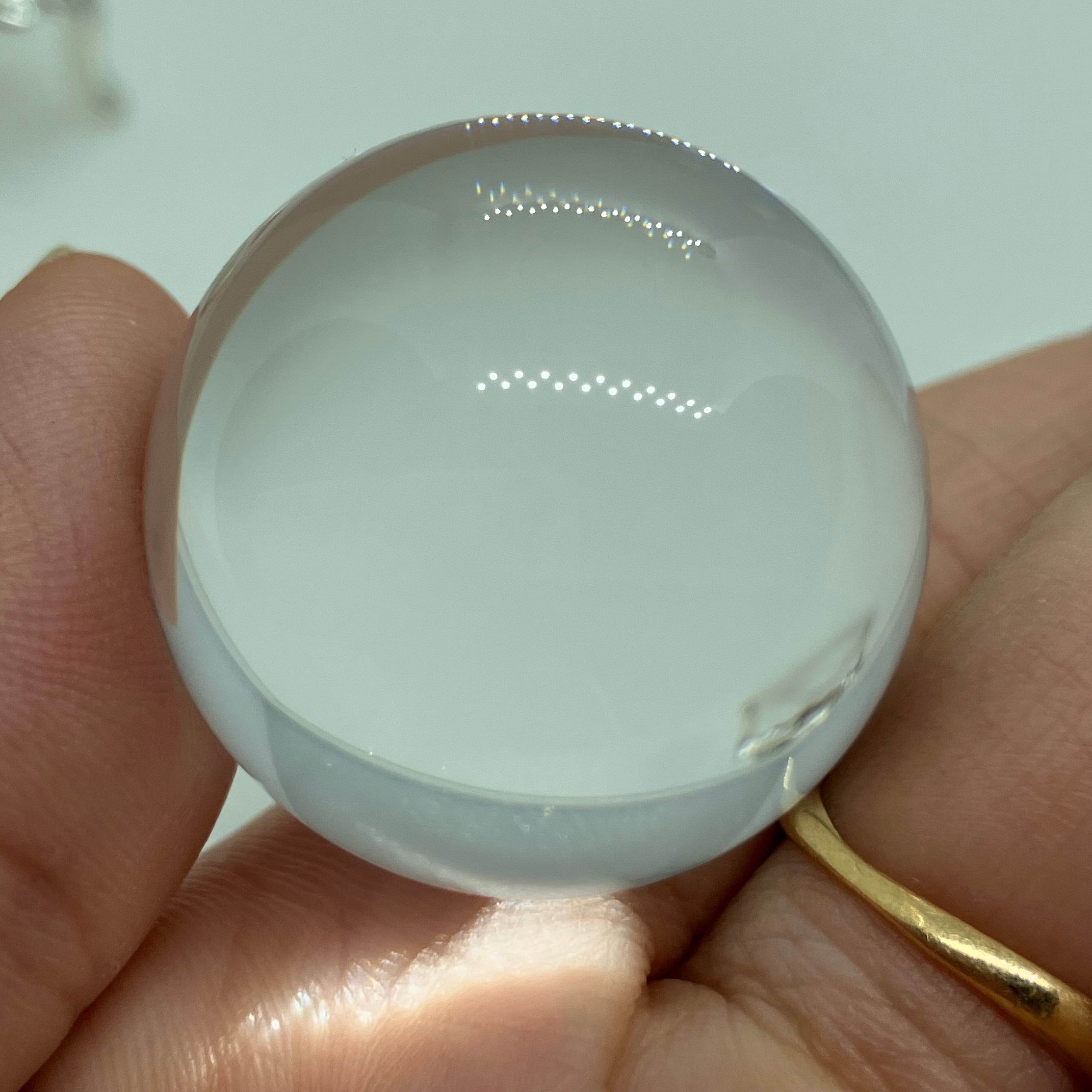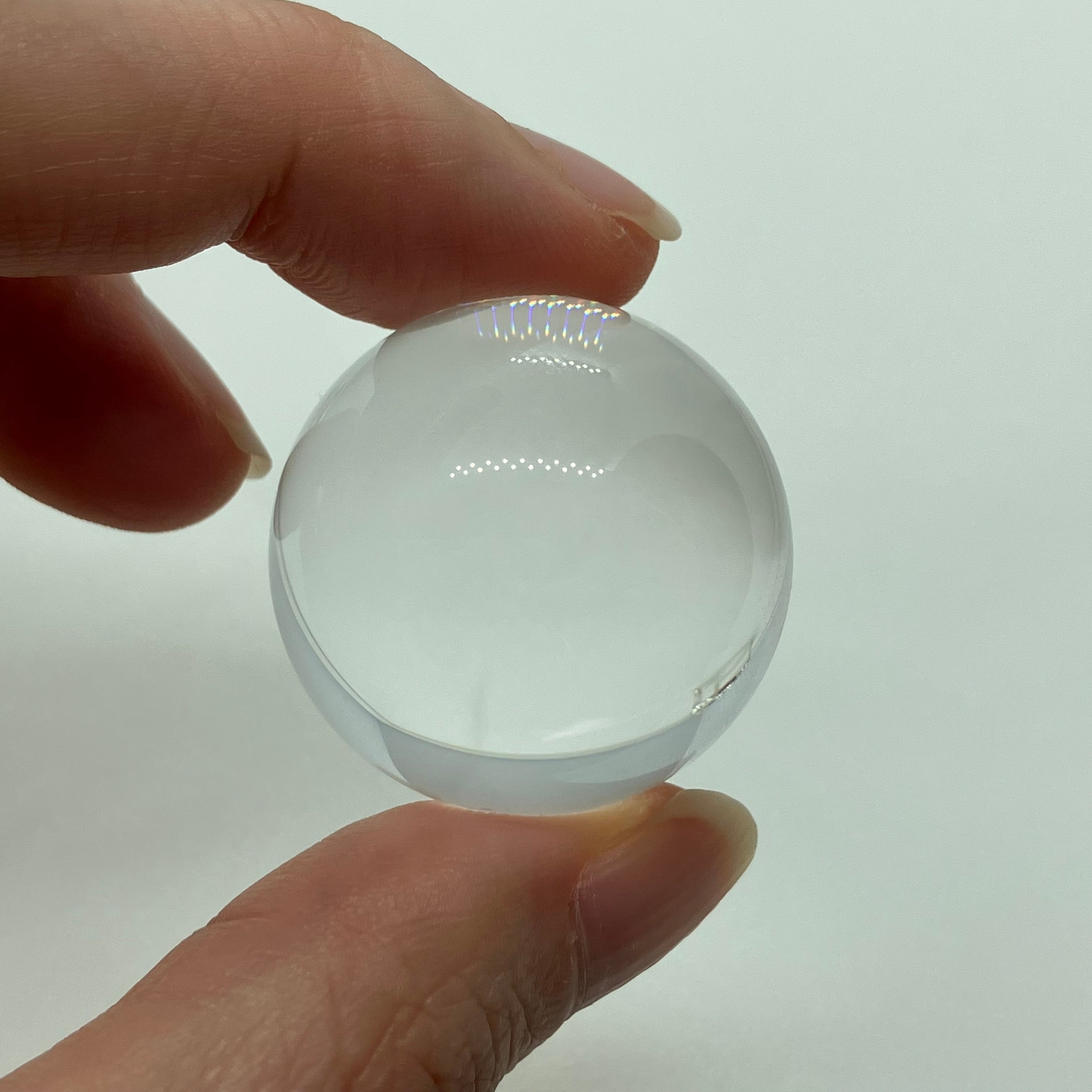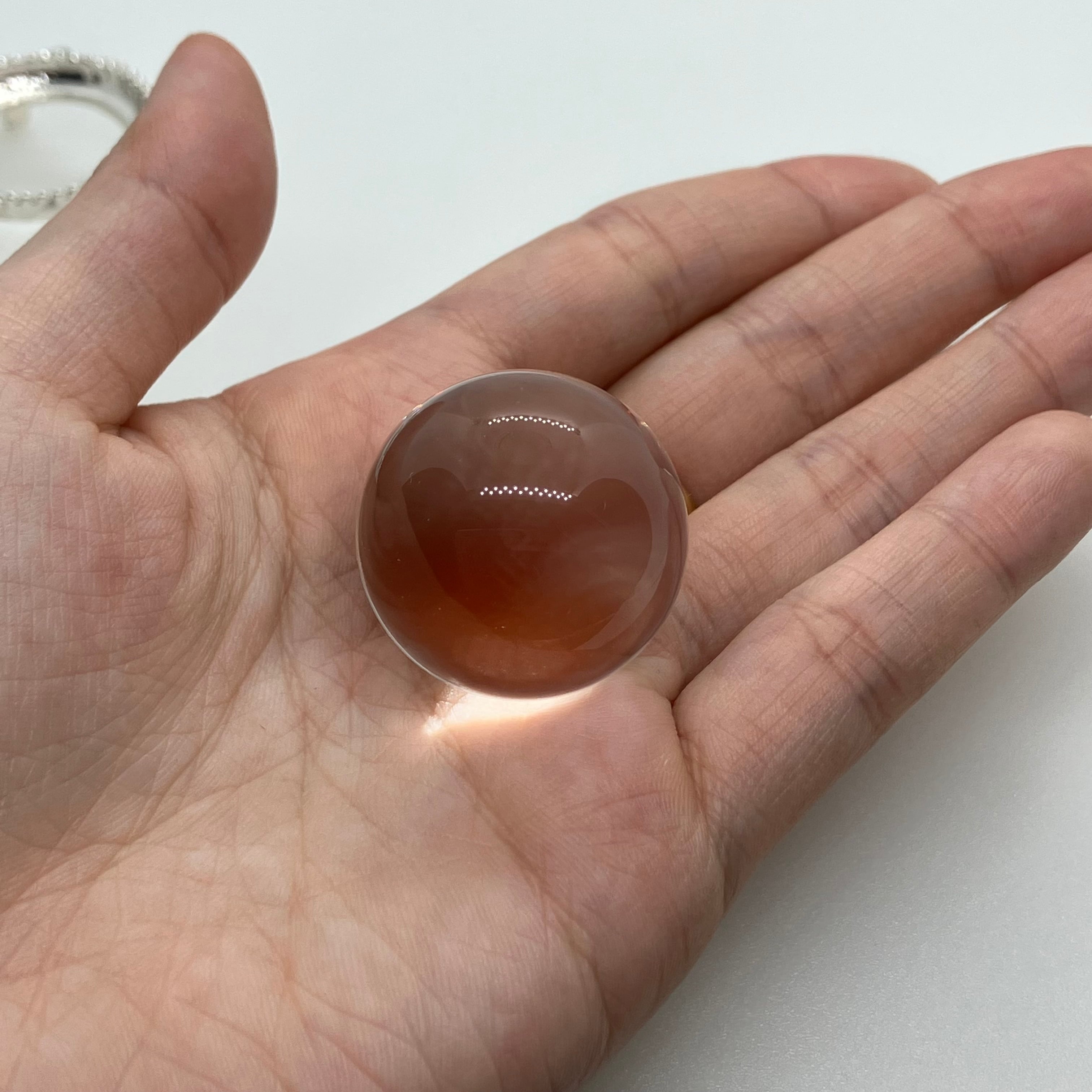 水晶は特に浄化法なども選ばない石ですが、丸玉の場合レンズ効果により光を集め、熱を持つ作用があります(太陽光の下で虫眼鏡で火が付くのと同じです)。