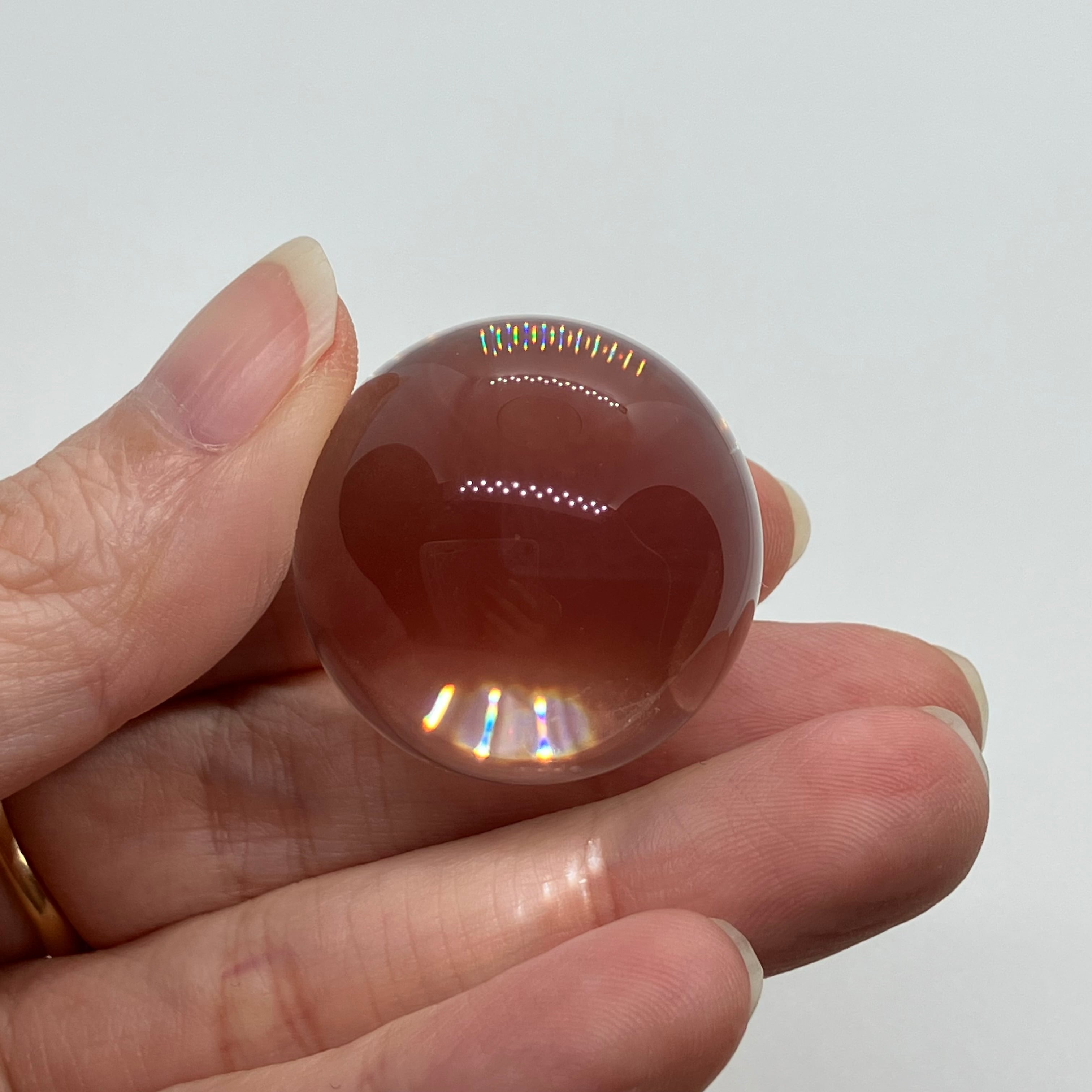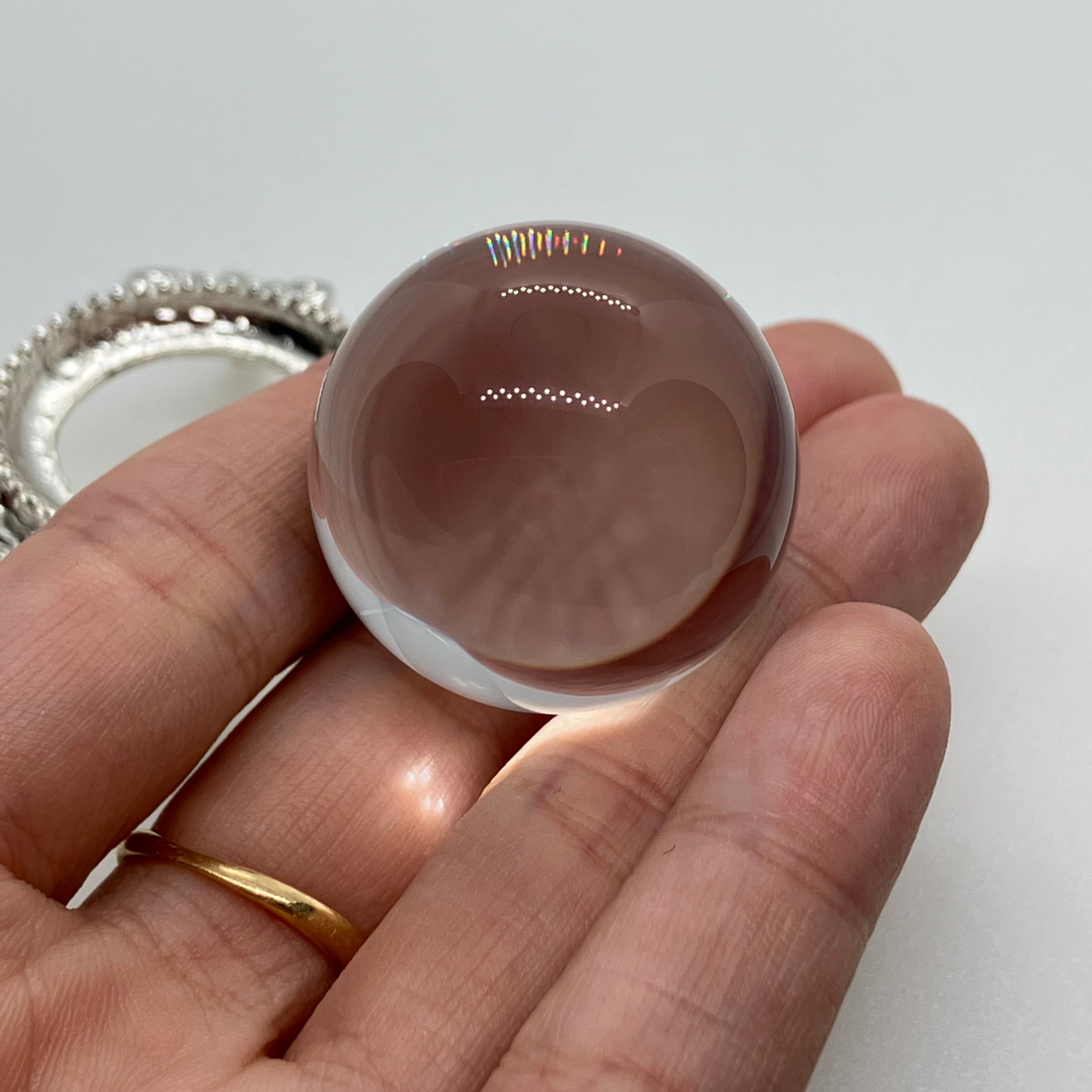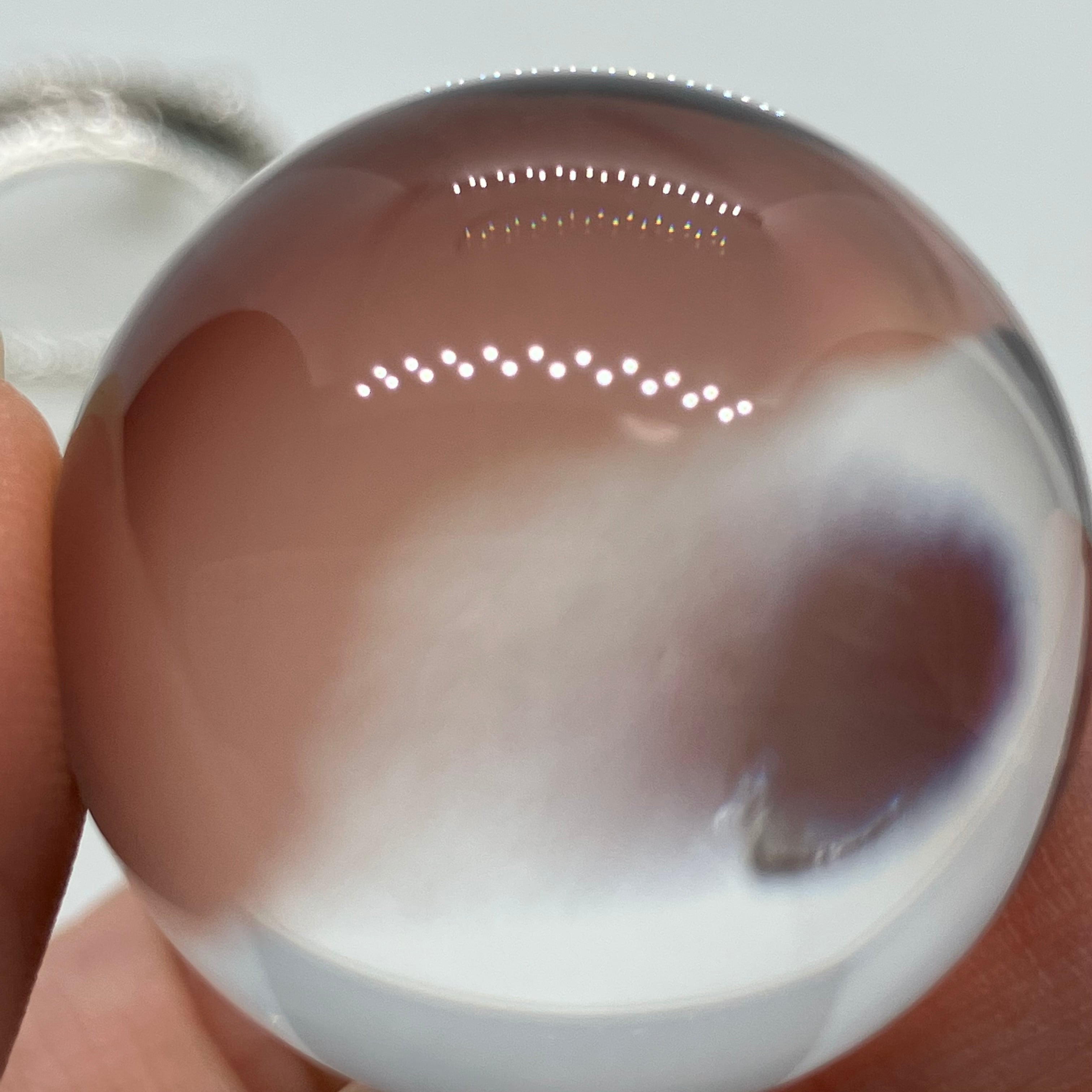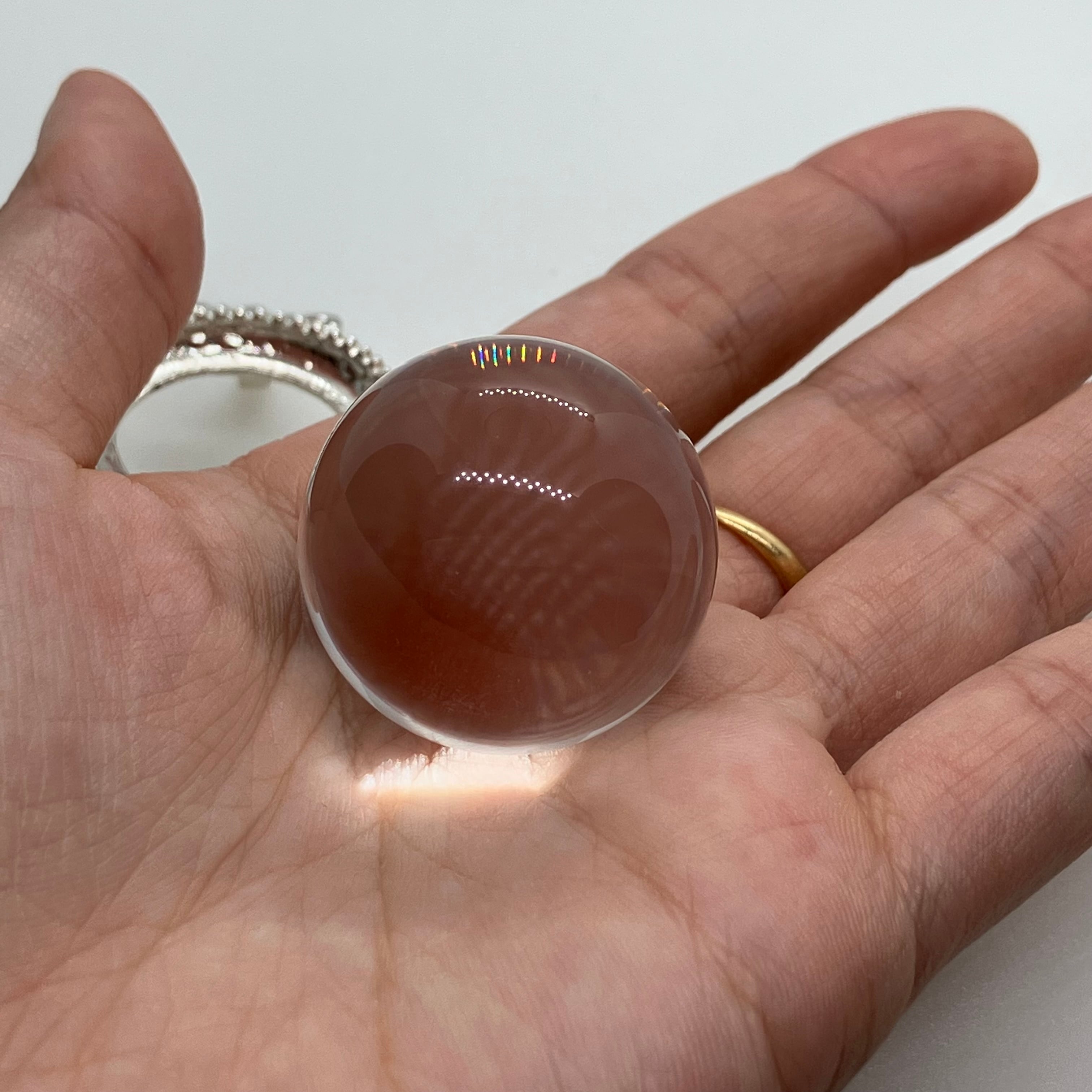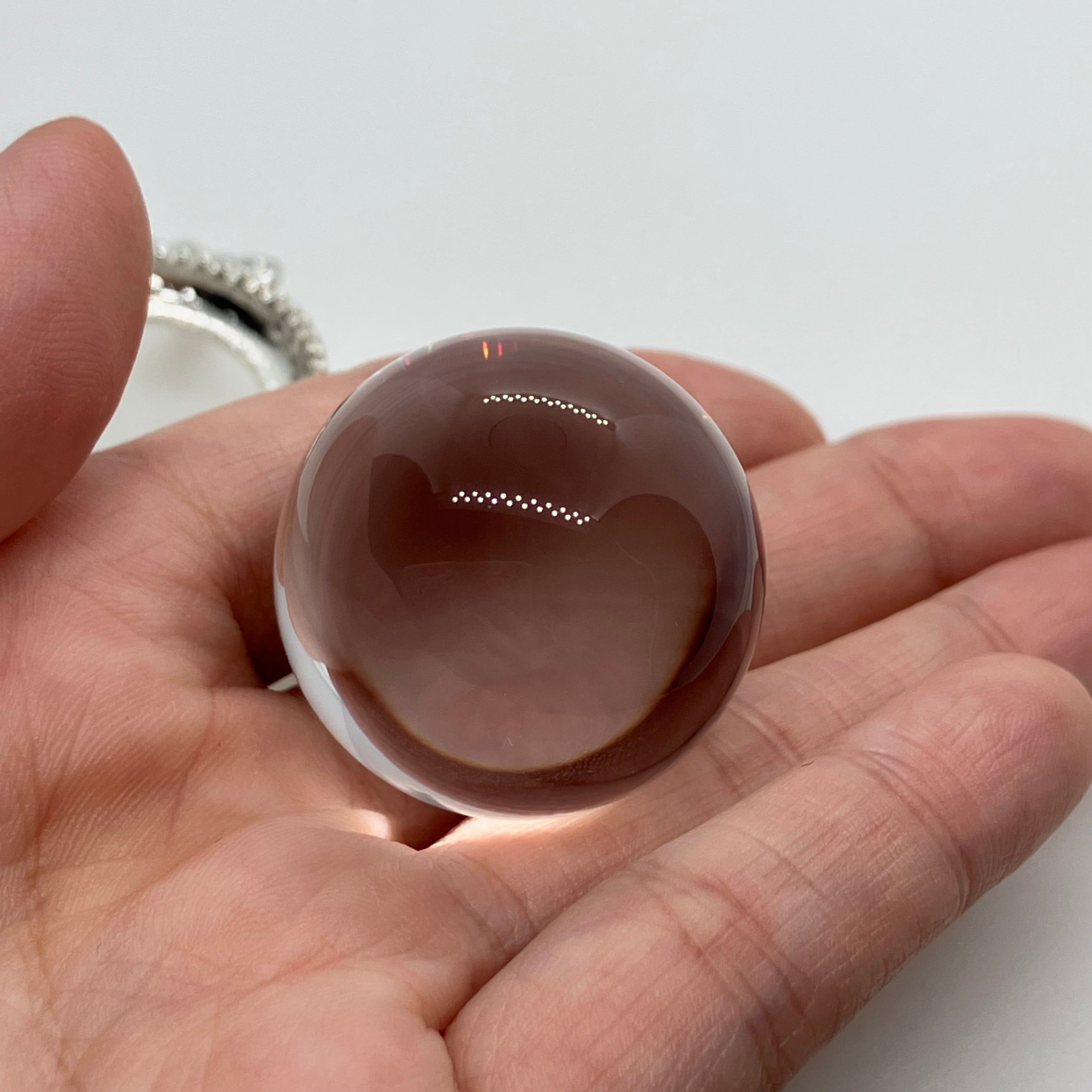 水晶は特に浄化法なども選ばない石ですが、丸玉の場合レンズ効果により光を集め、熱を持つ作用があります(太陽光の下で虫眼鏡で火が付くのと同じです)。