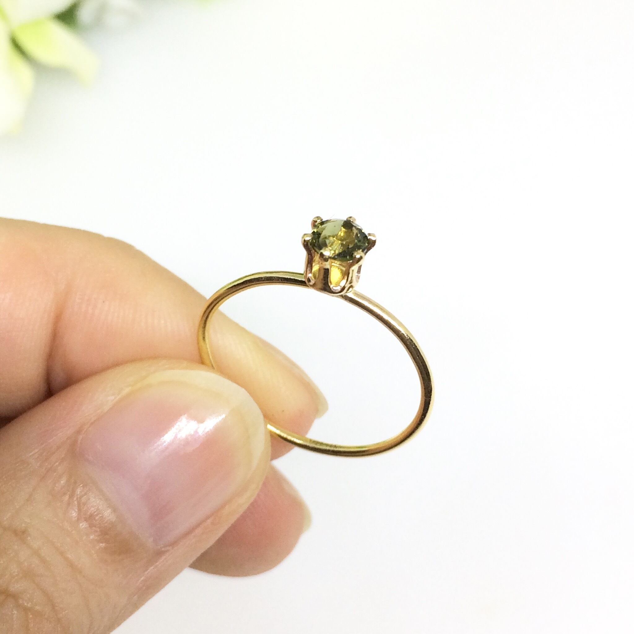 美しいモルダバイトのルースを使用して、シンプルなリングを制作しました。