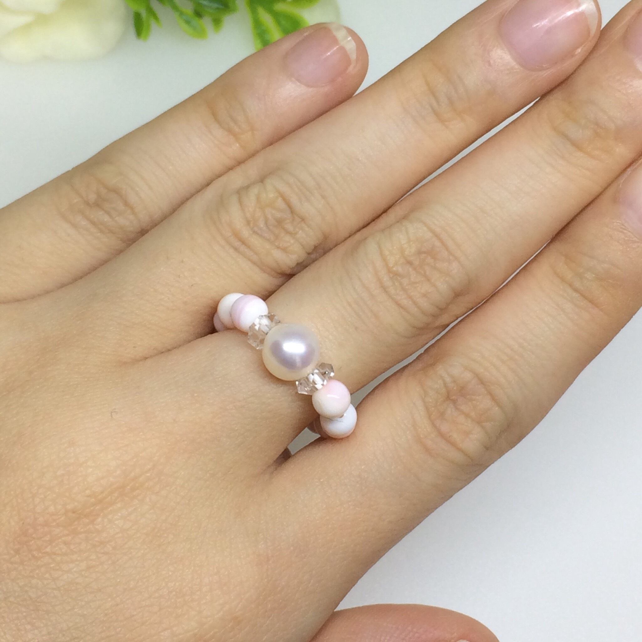 グレードの高いクイーンコンクシェルが入荷しましたので、かわいいリングをつくりました。