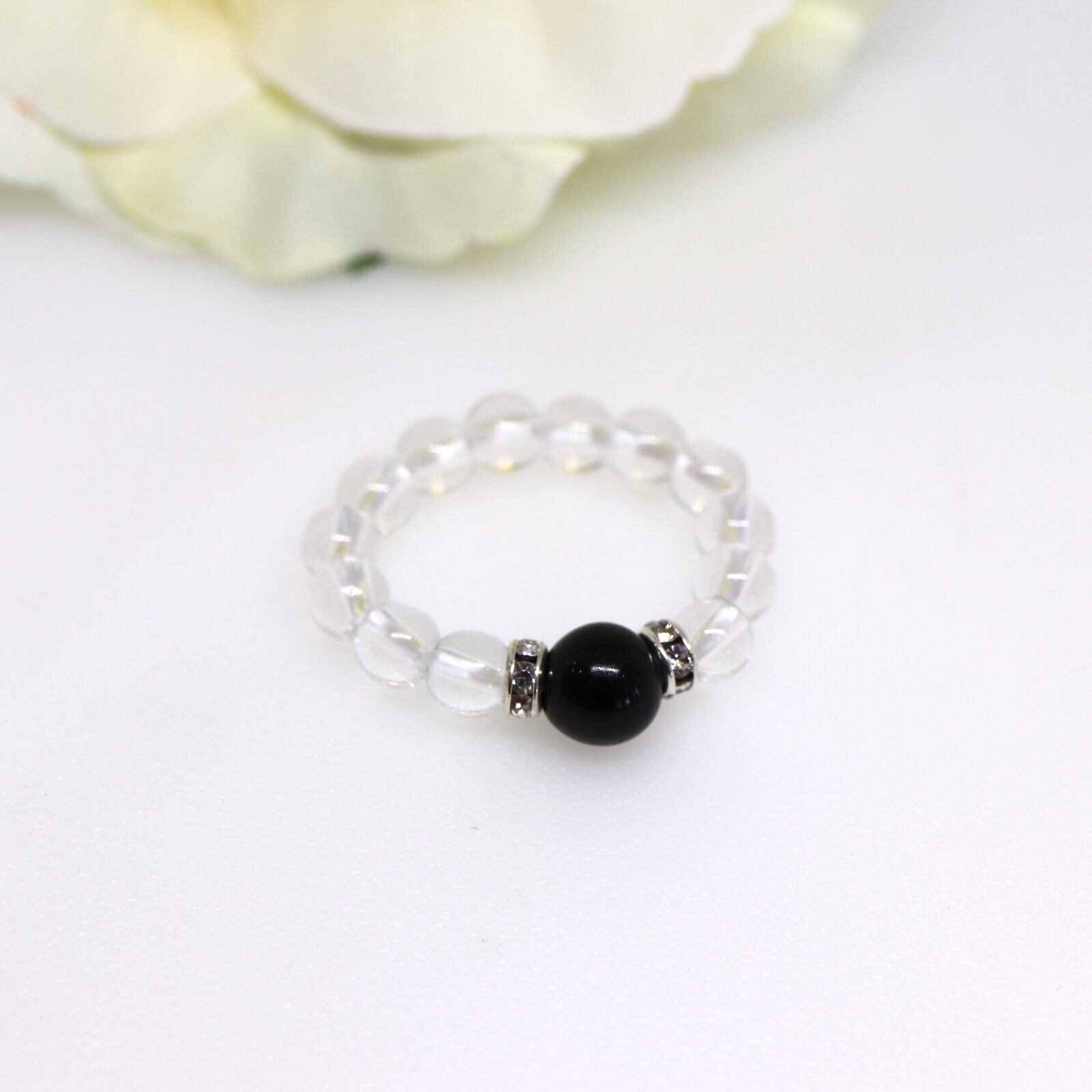 モリオンと水晶でリングを制作しました。