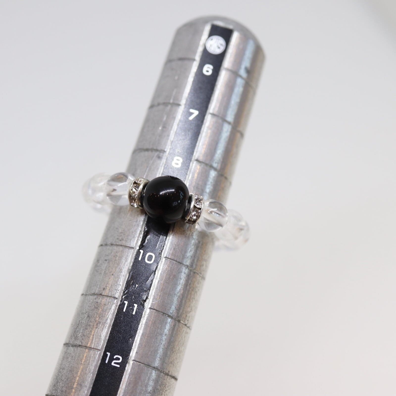 サイズ棒(画像4枚目)を使ってご希望サイズに制作しますが、ゴムなので石の粒数の増減で調整致します。上~下まで多少サイズ幅があるかと思います。