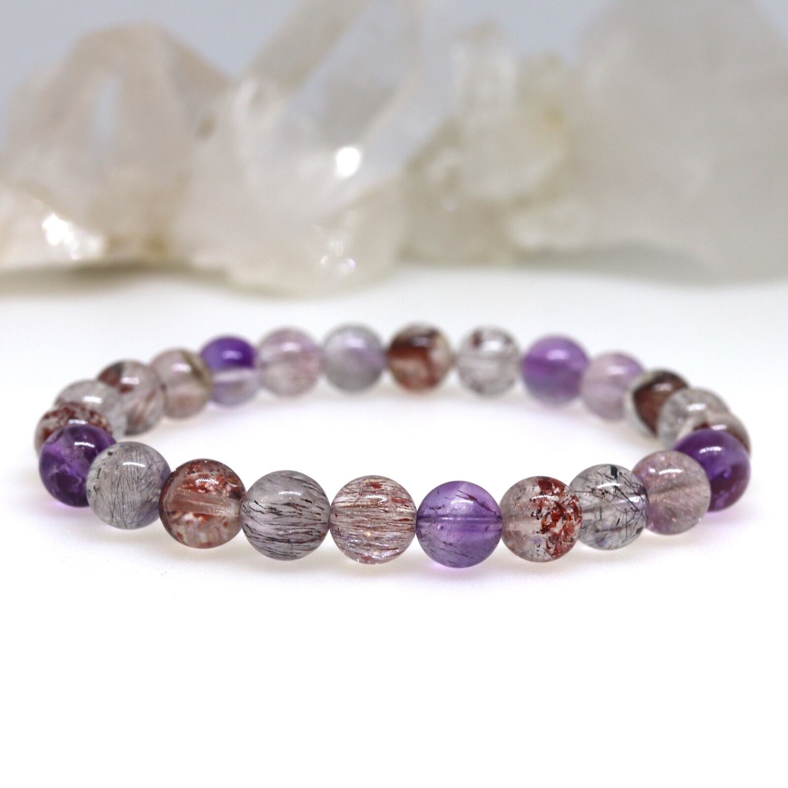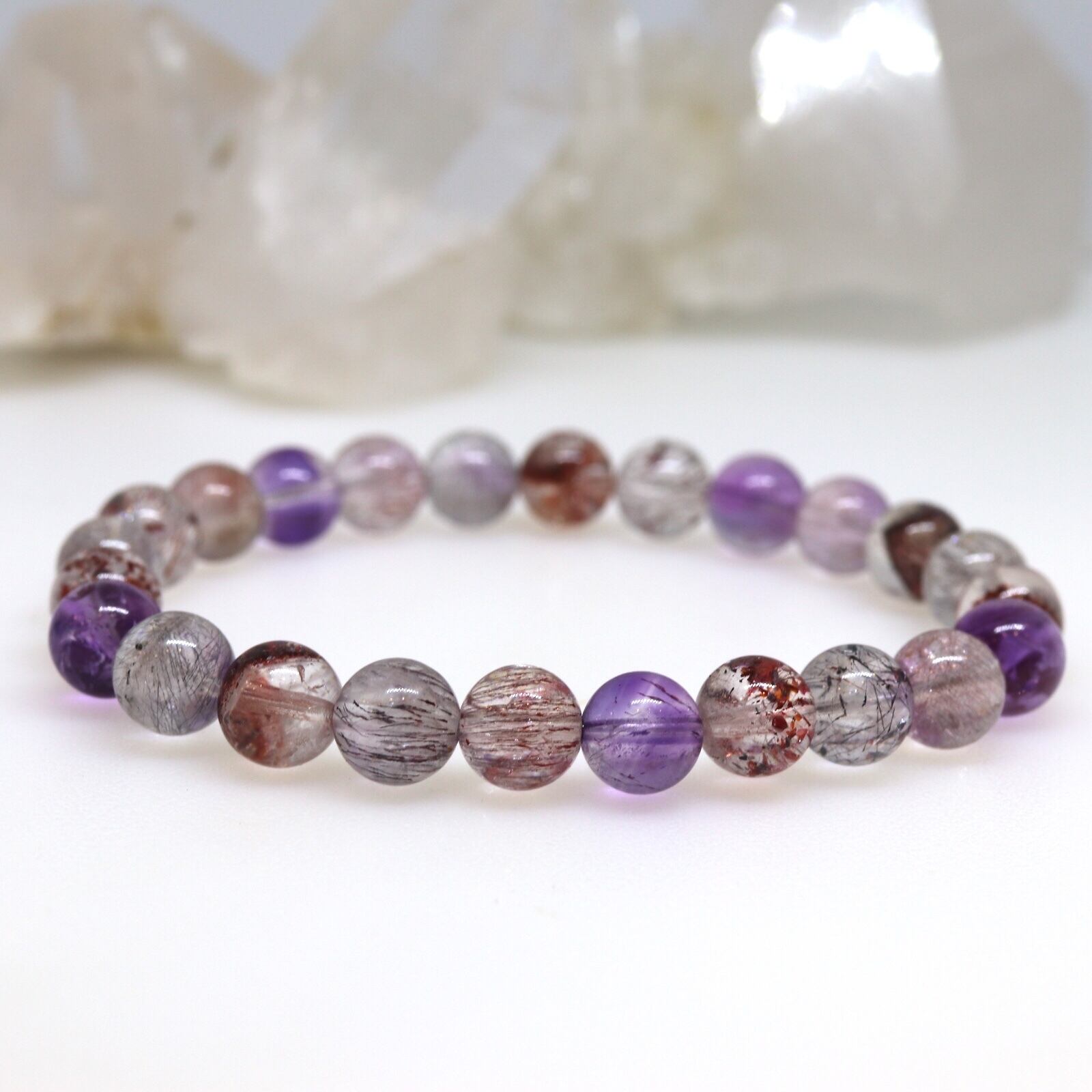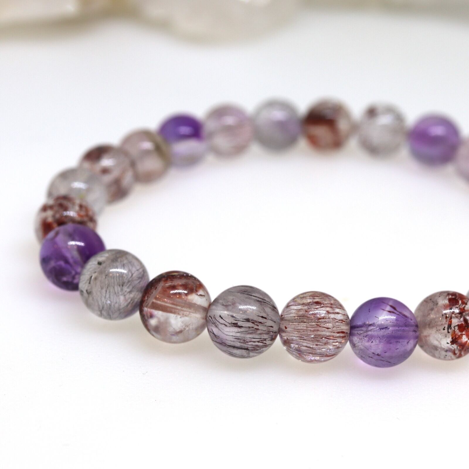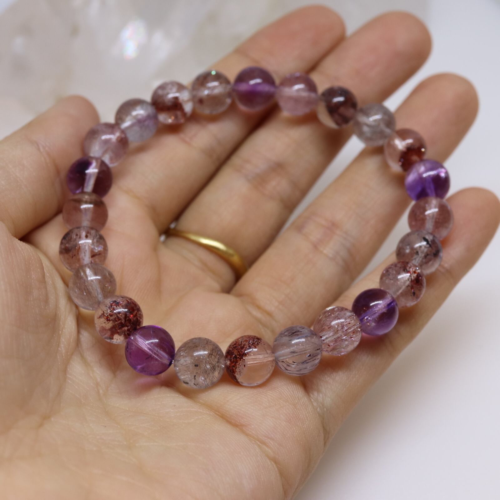 水晶の中に複数の鉱物が入るため、鉱物同士の力が相乗効果的に働くかなりエネルギーの強い石で、原石の段階で7種類が入っている場合でも同等の力を持つと言われております。