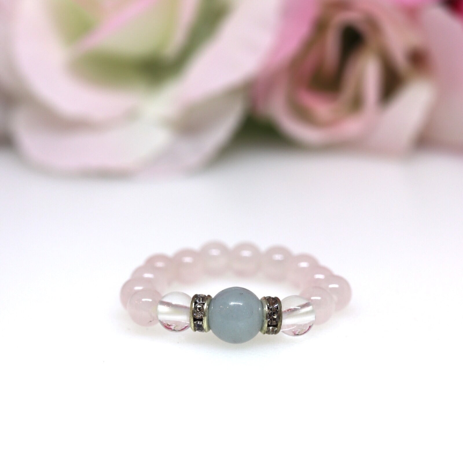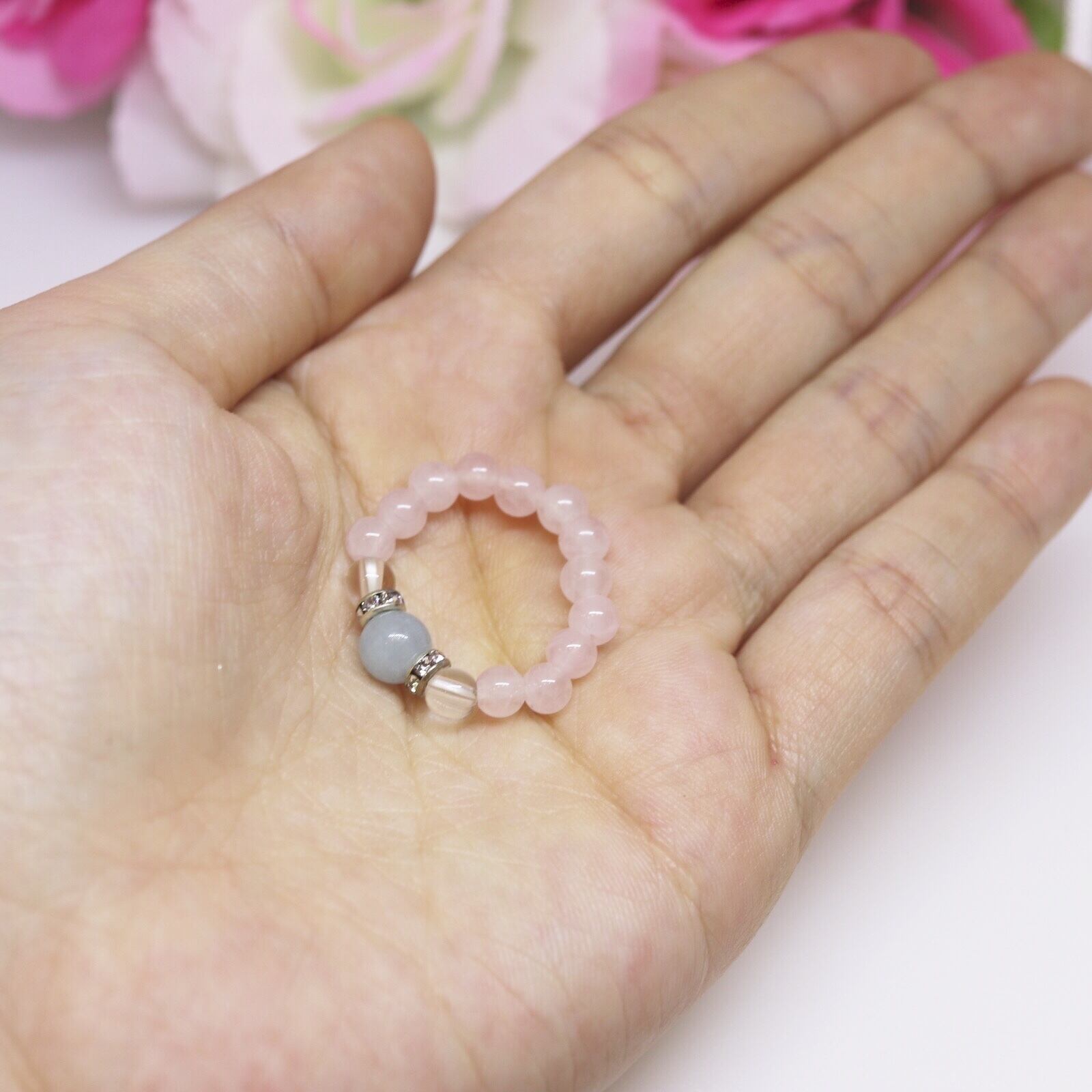 美しいアクアマリンとローズクォーツで可愛い指輪を制作します。