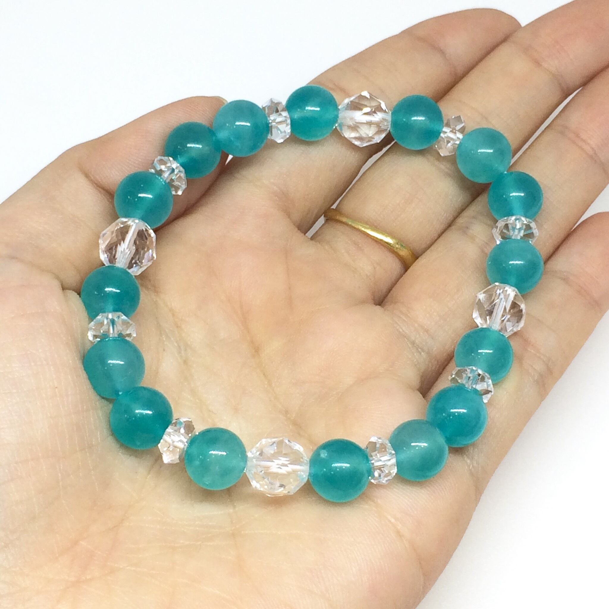 ウイグル産アマゾナイトと水晶カットを組み合わせてブレスレットをつくりました。