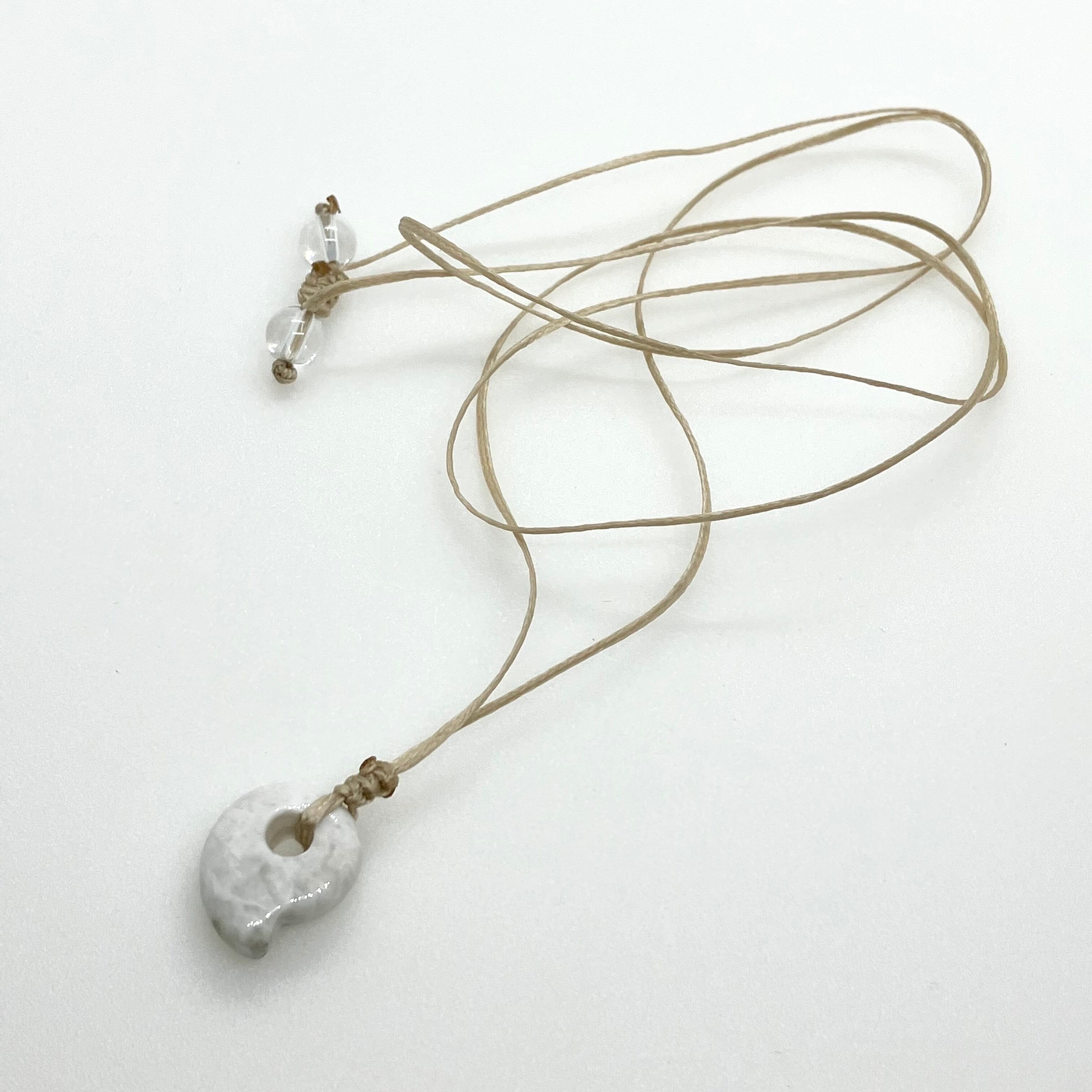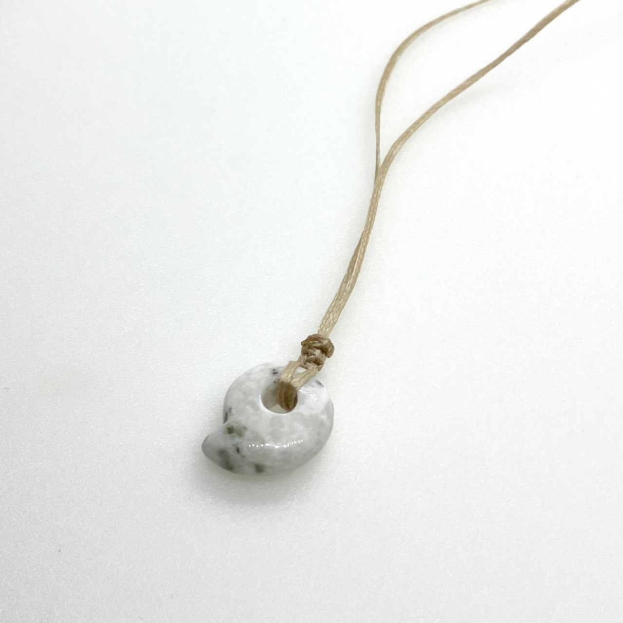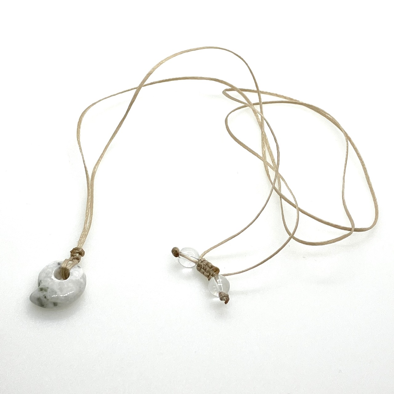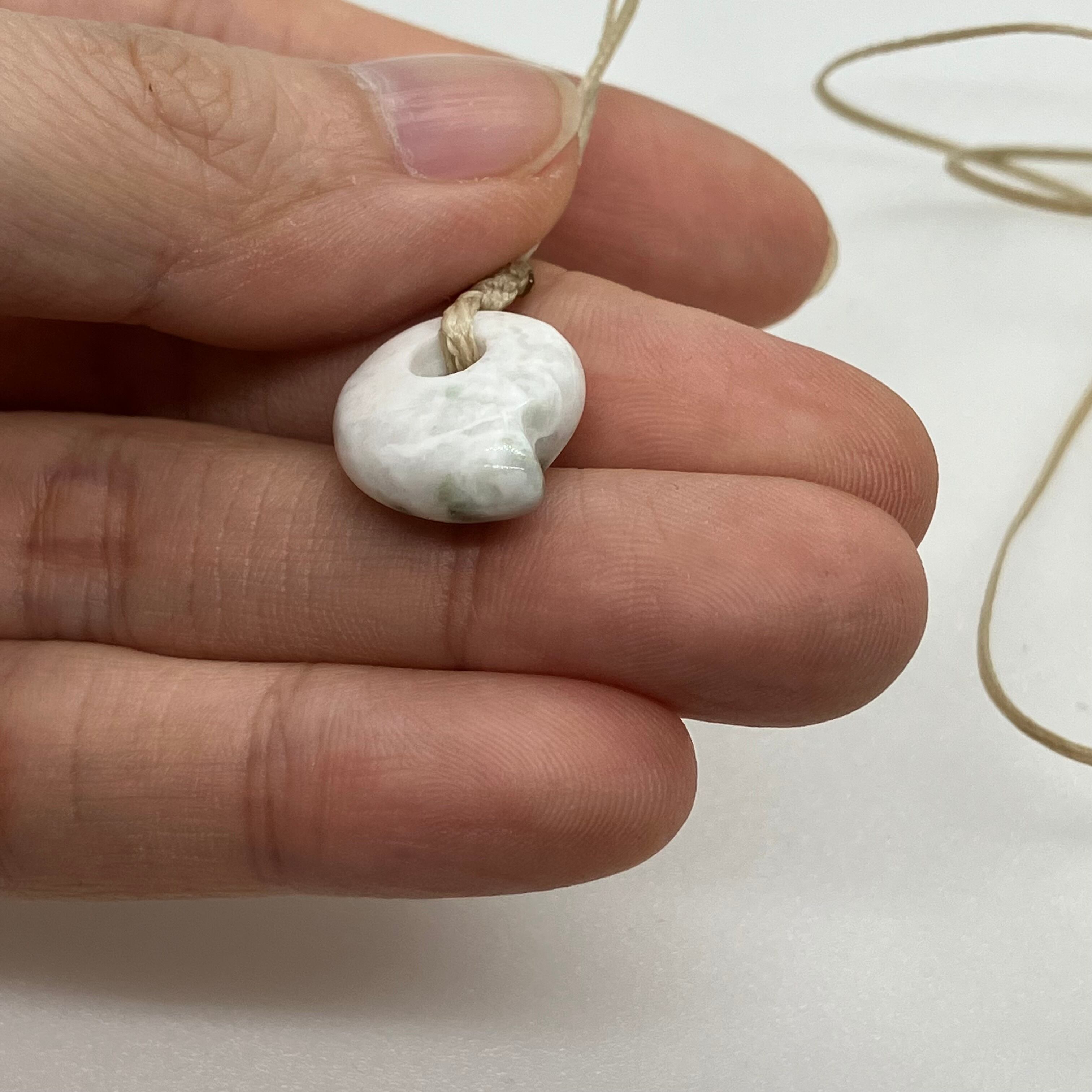糸魚川翡翠の勾玉が再入荷しましたので、身に付けられるよう蝋引き紐のネックレスを作りました。