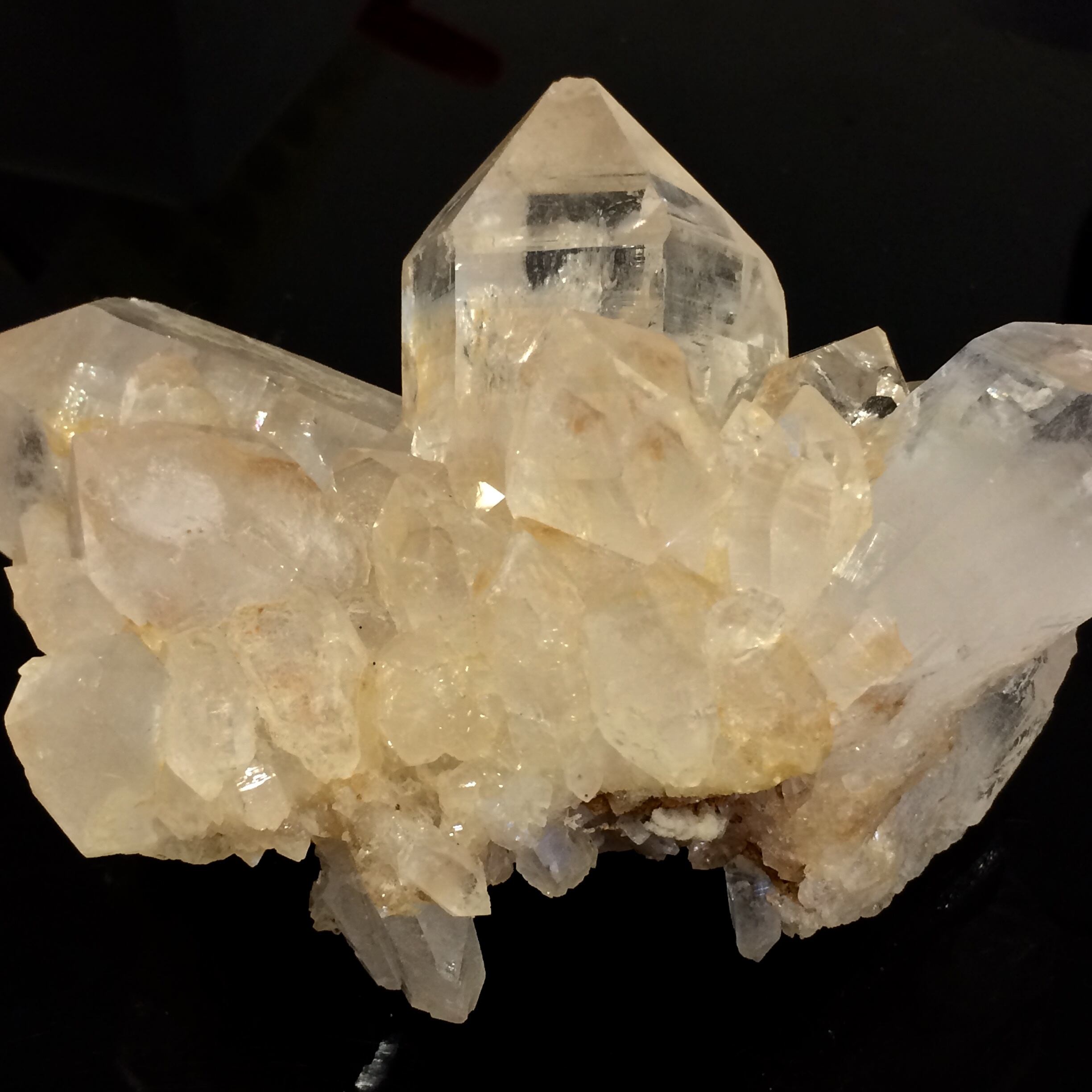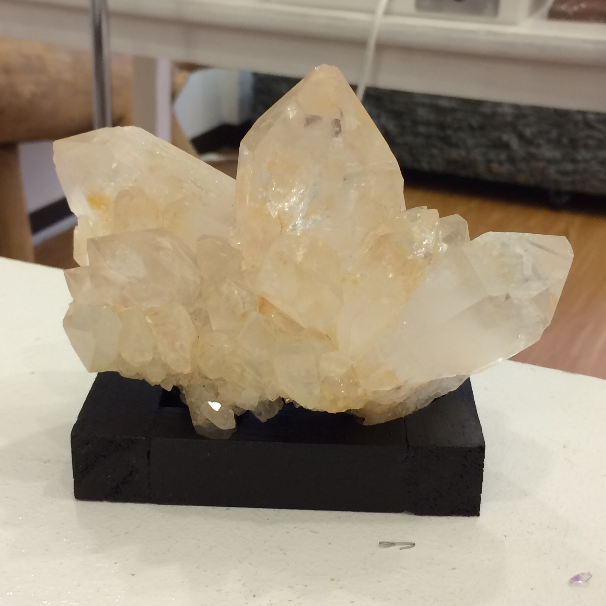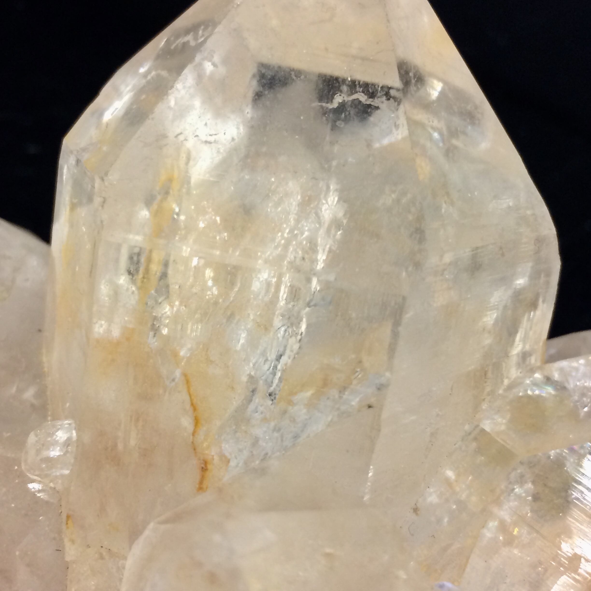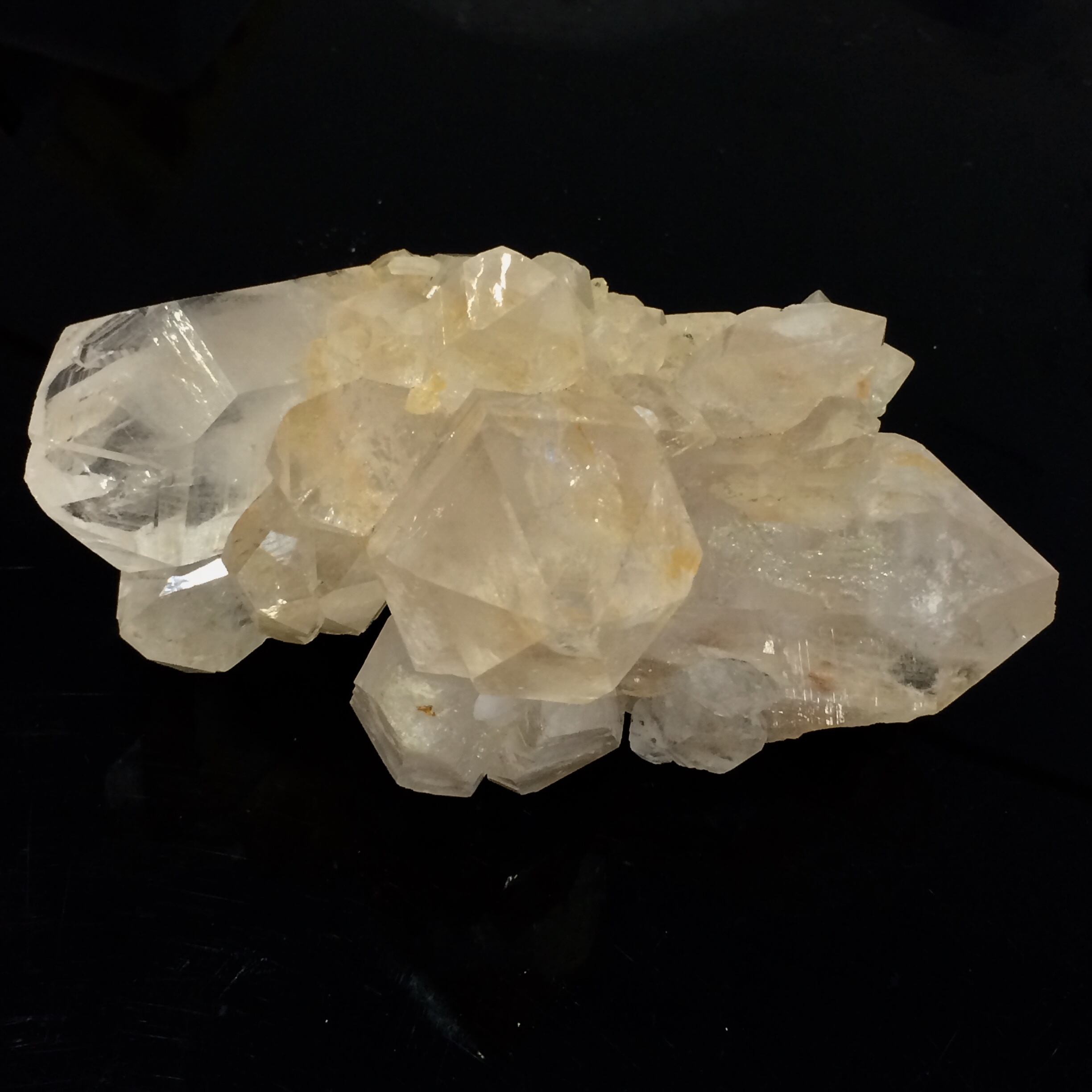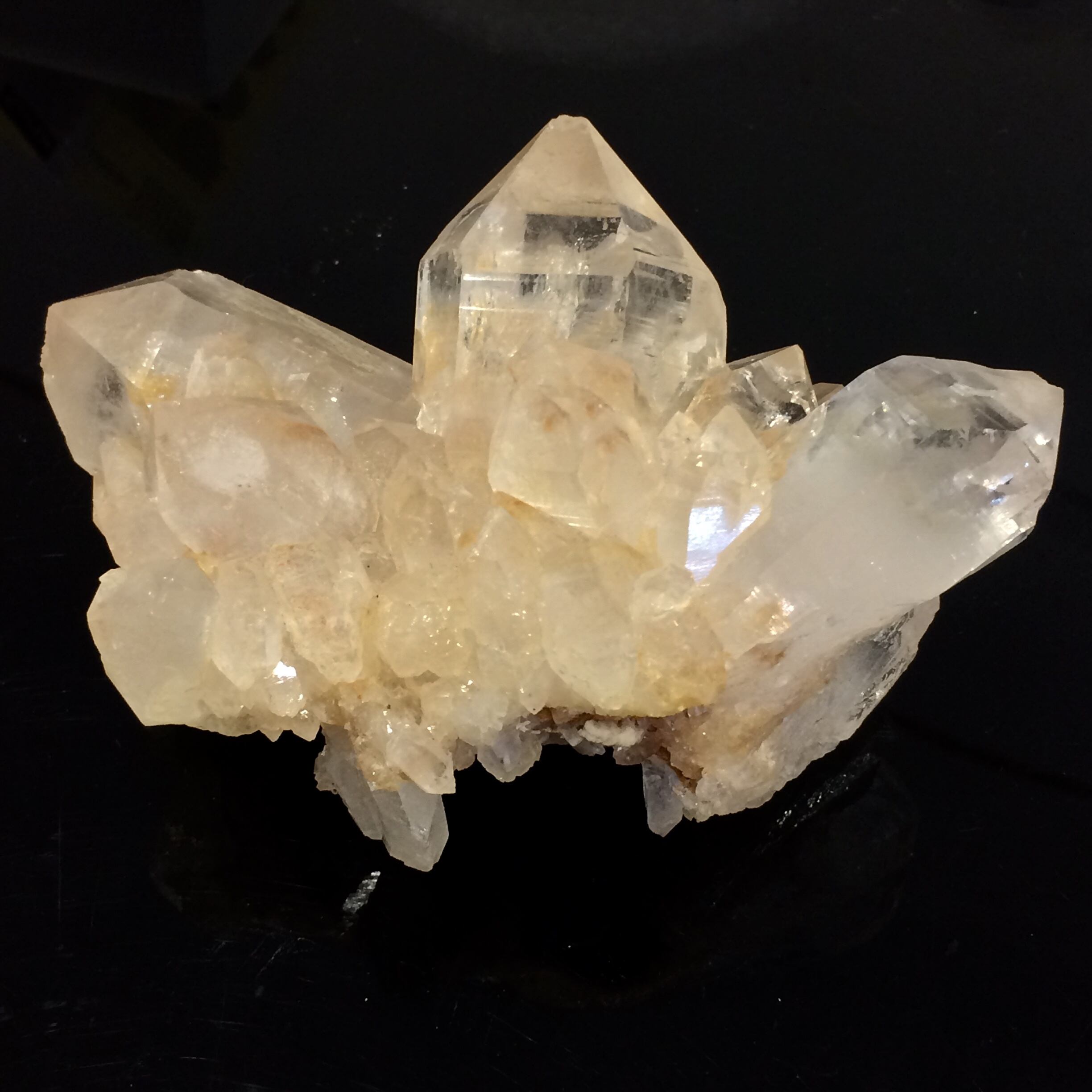 少しゴールドかかった色味と、太いポイント、透明感、開いたような形がとても綺麗なクラスターです。