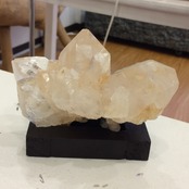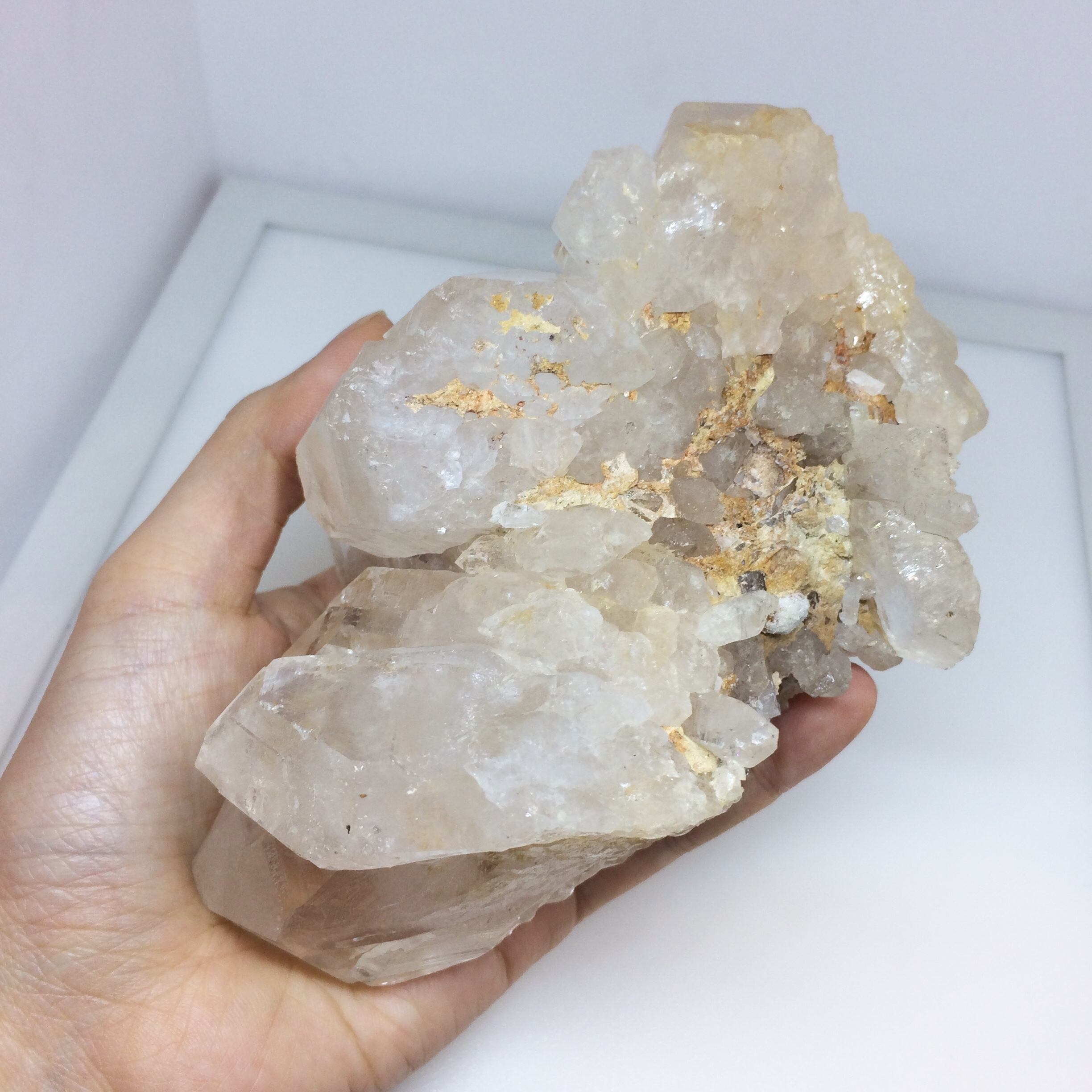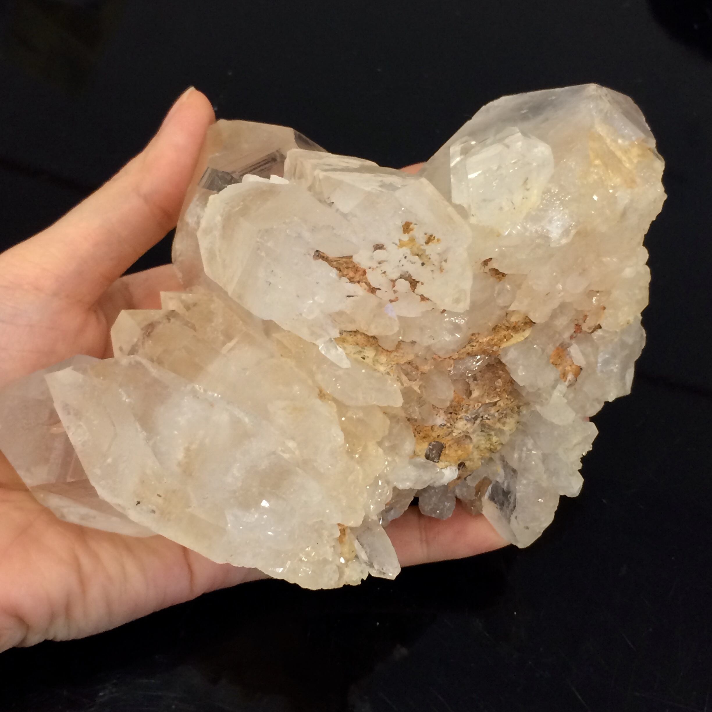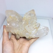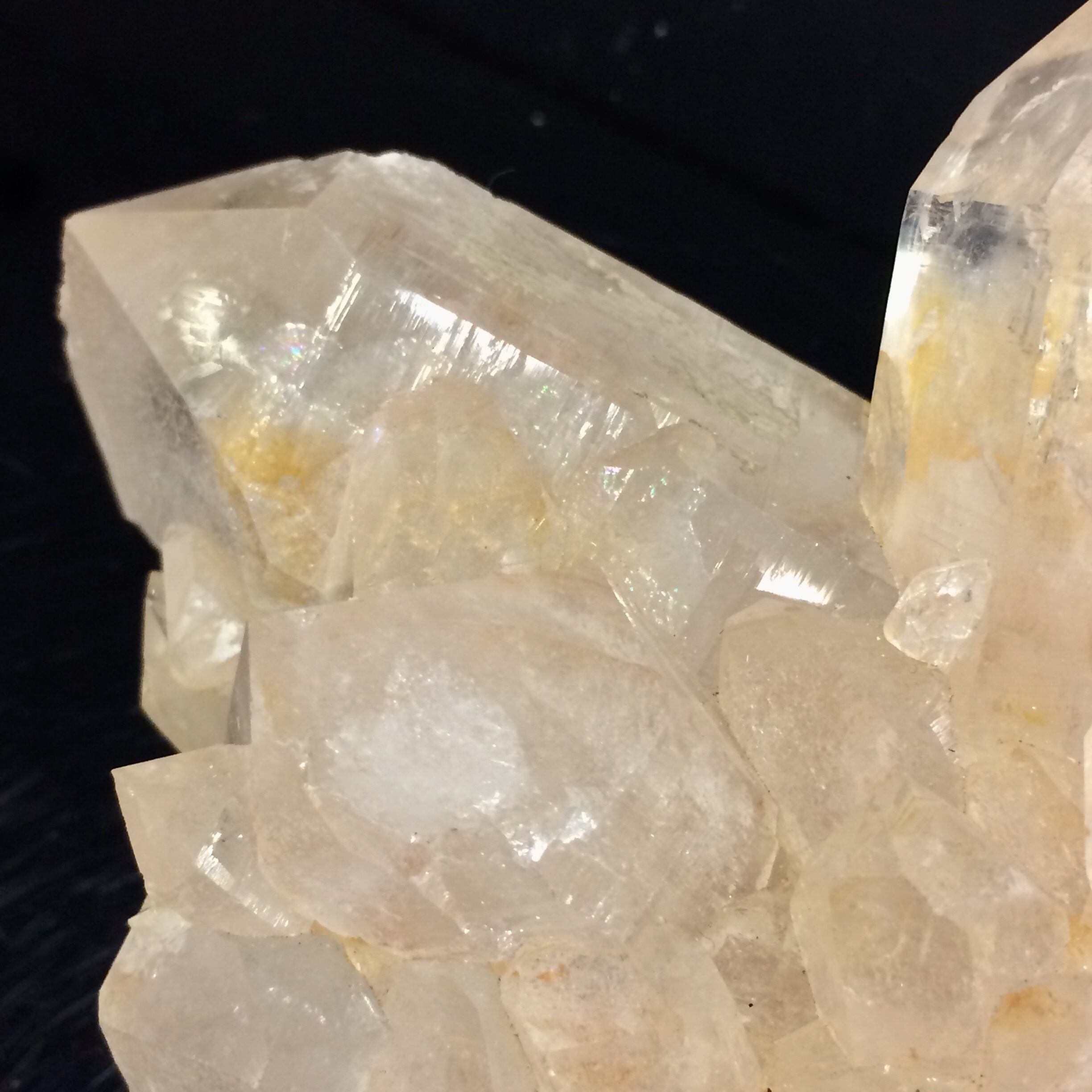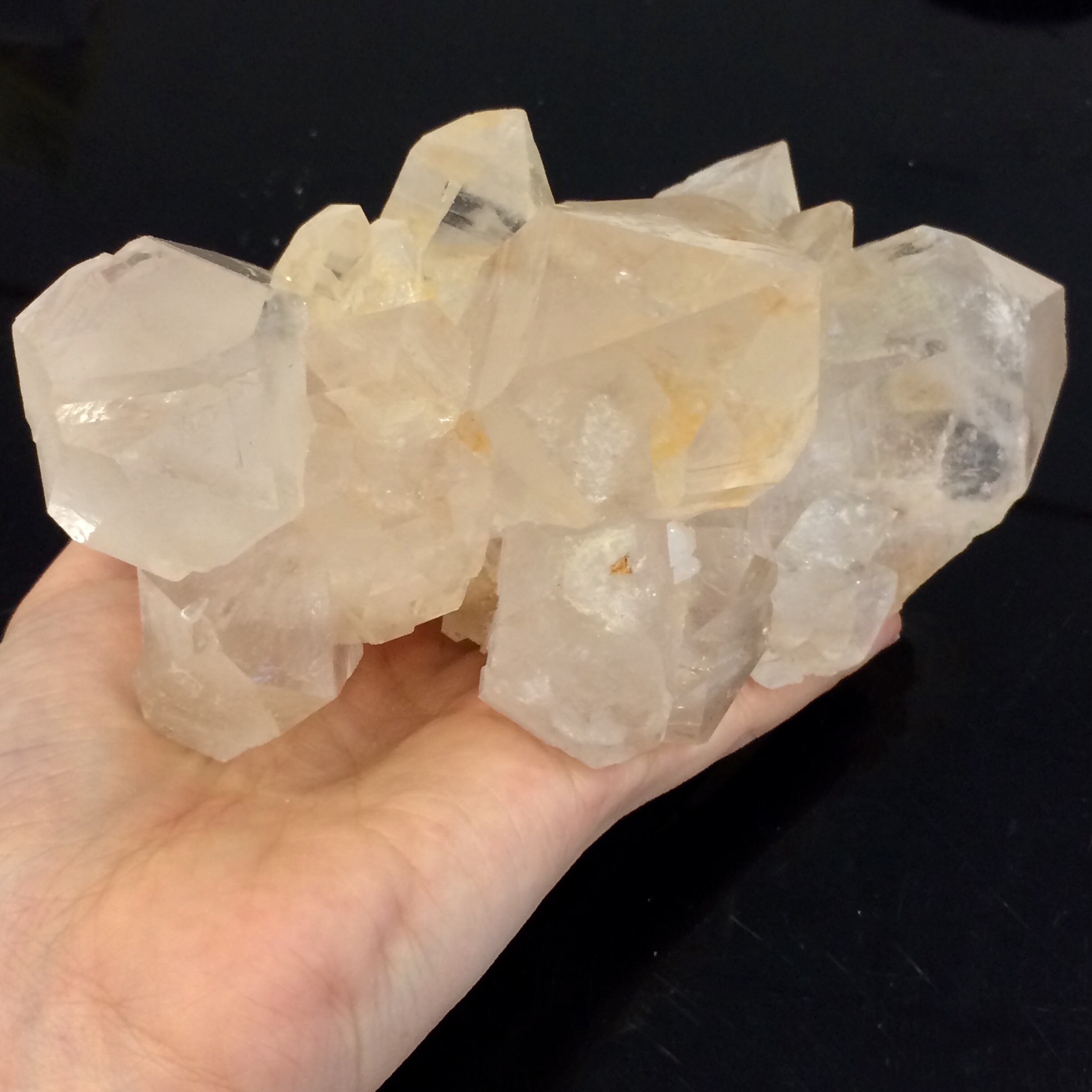 少しゴールドかかった色味と、太いポイント、透明感、開いたような形がとても綺麗なクラスターです。