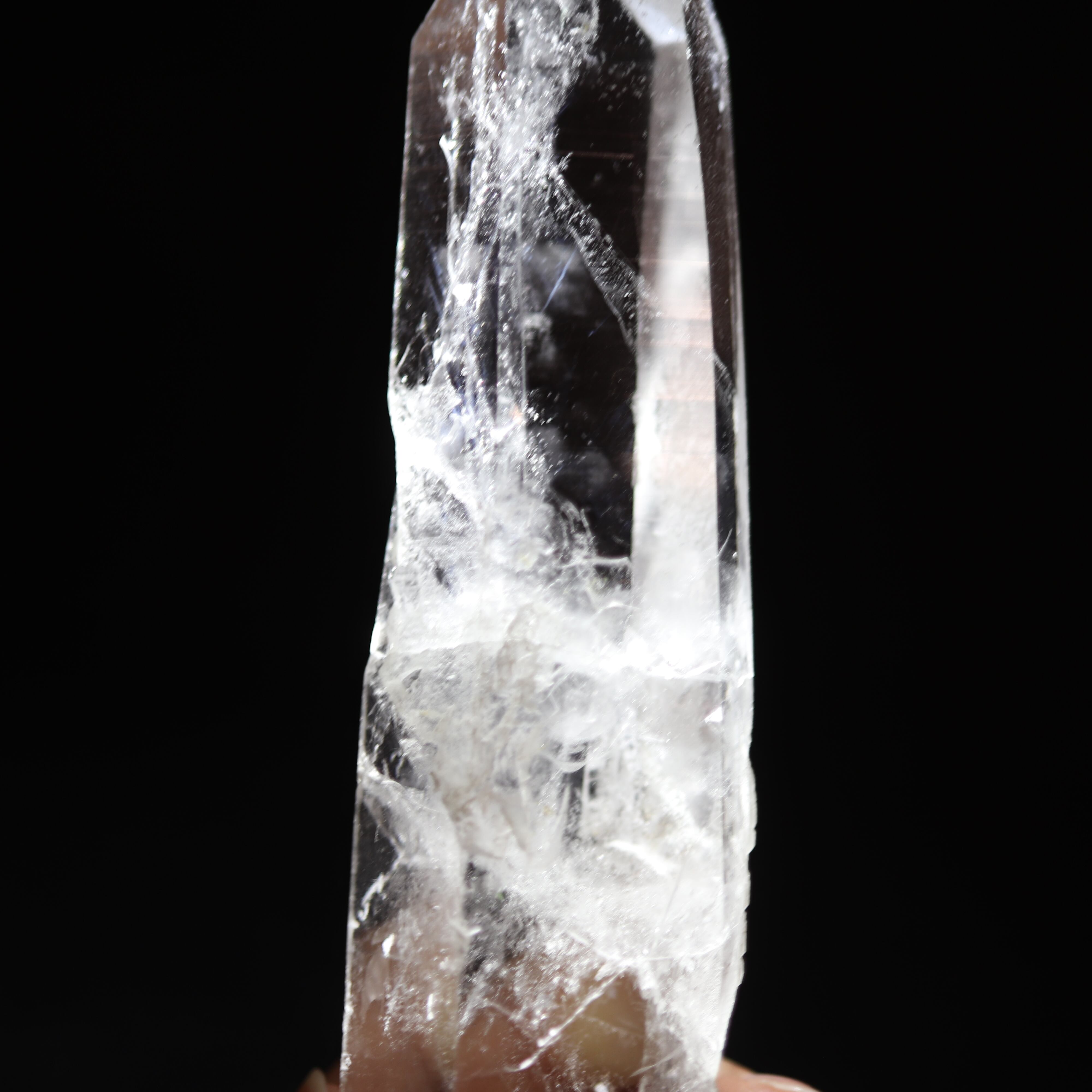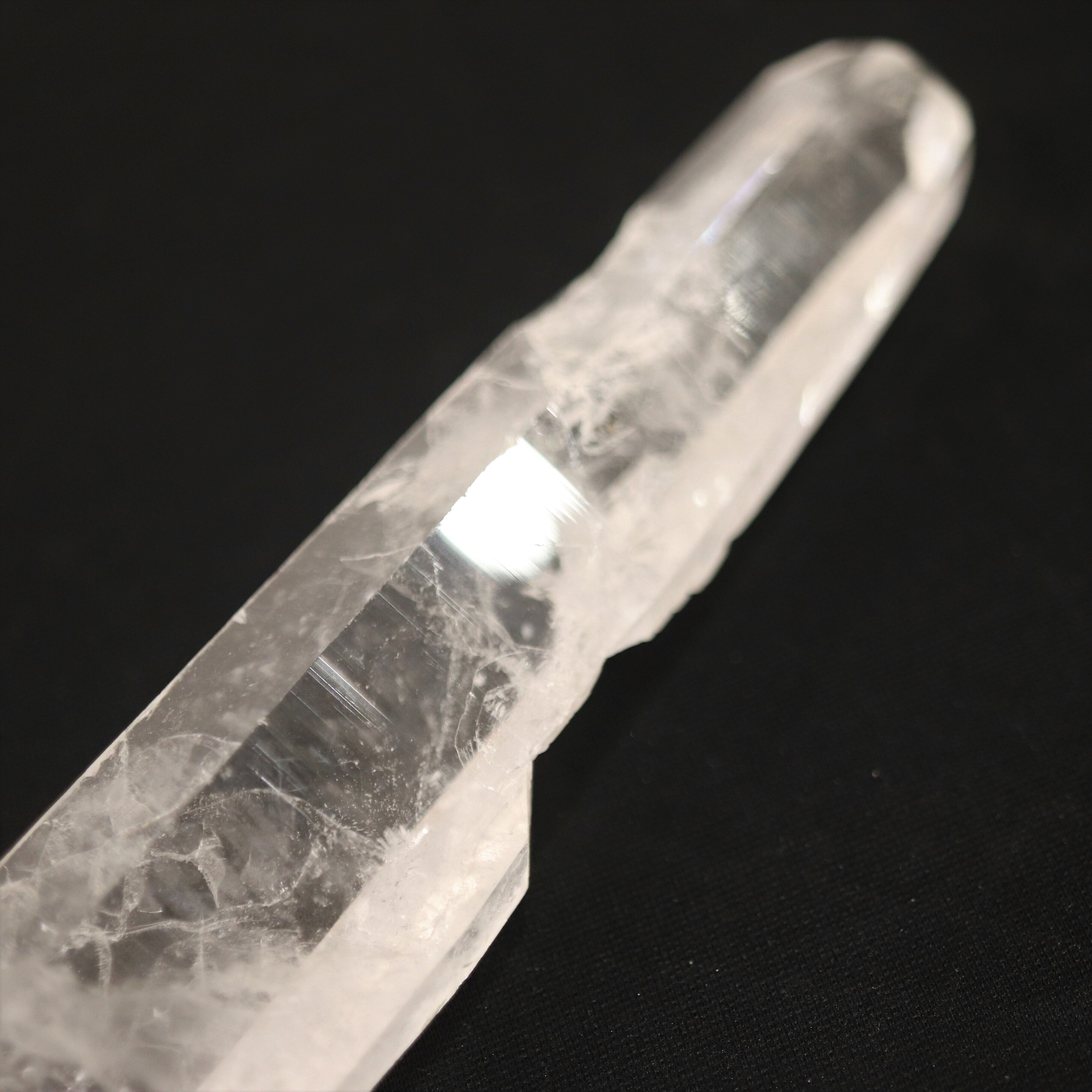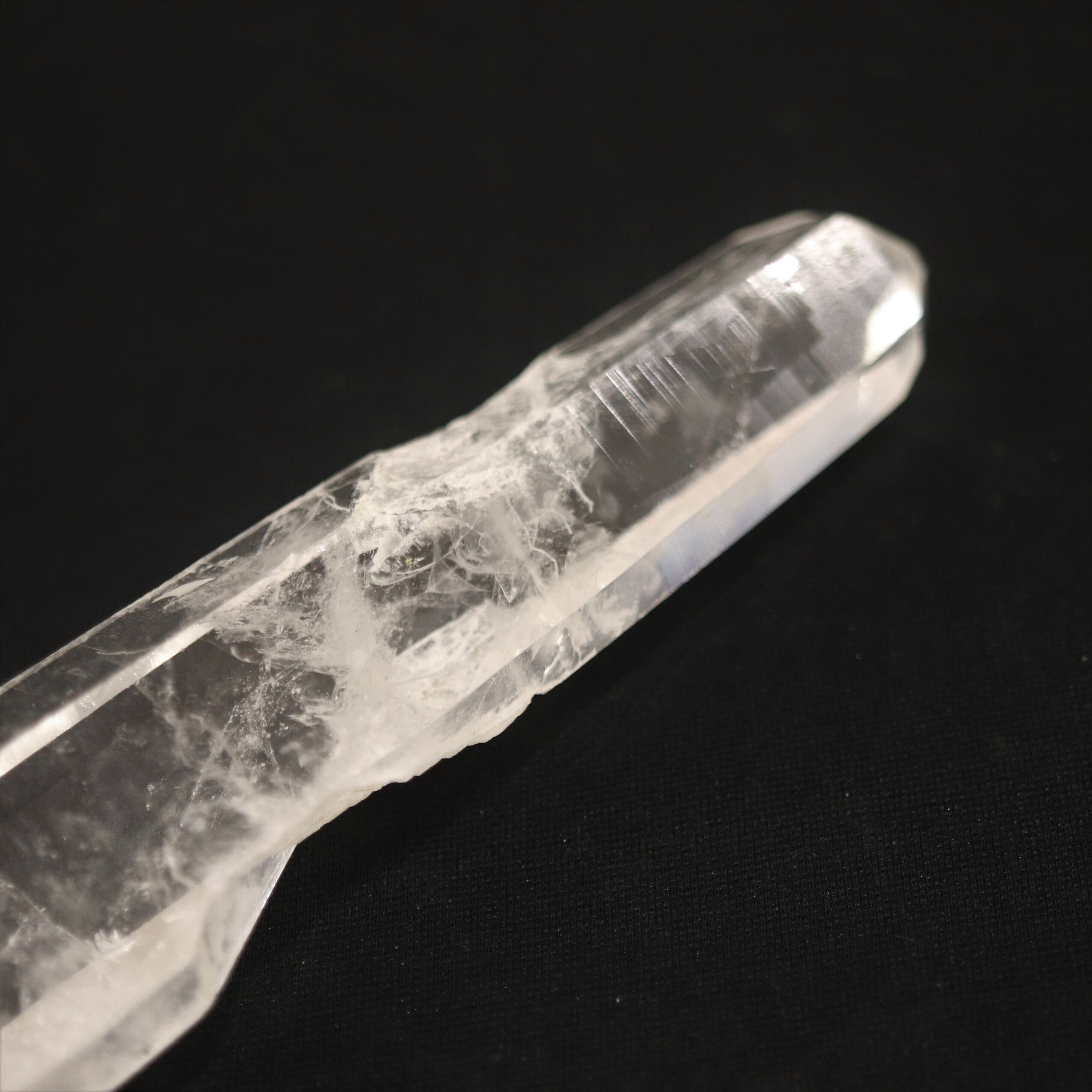 エンジェルラダーは水晶の中に青白く光るシラーが入るもので、その模様から天使の梯子と呼ばれております。