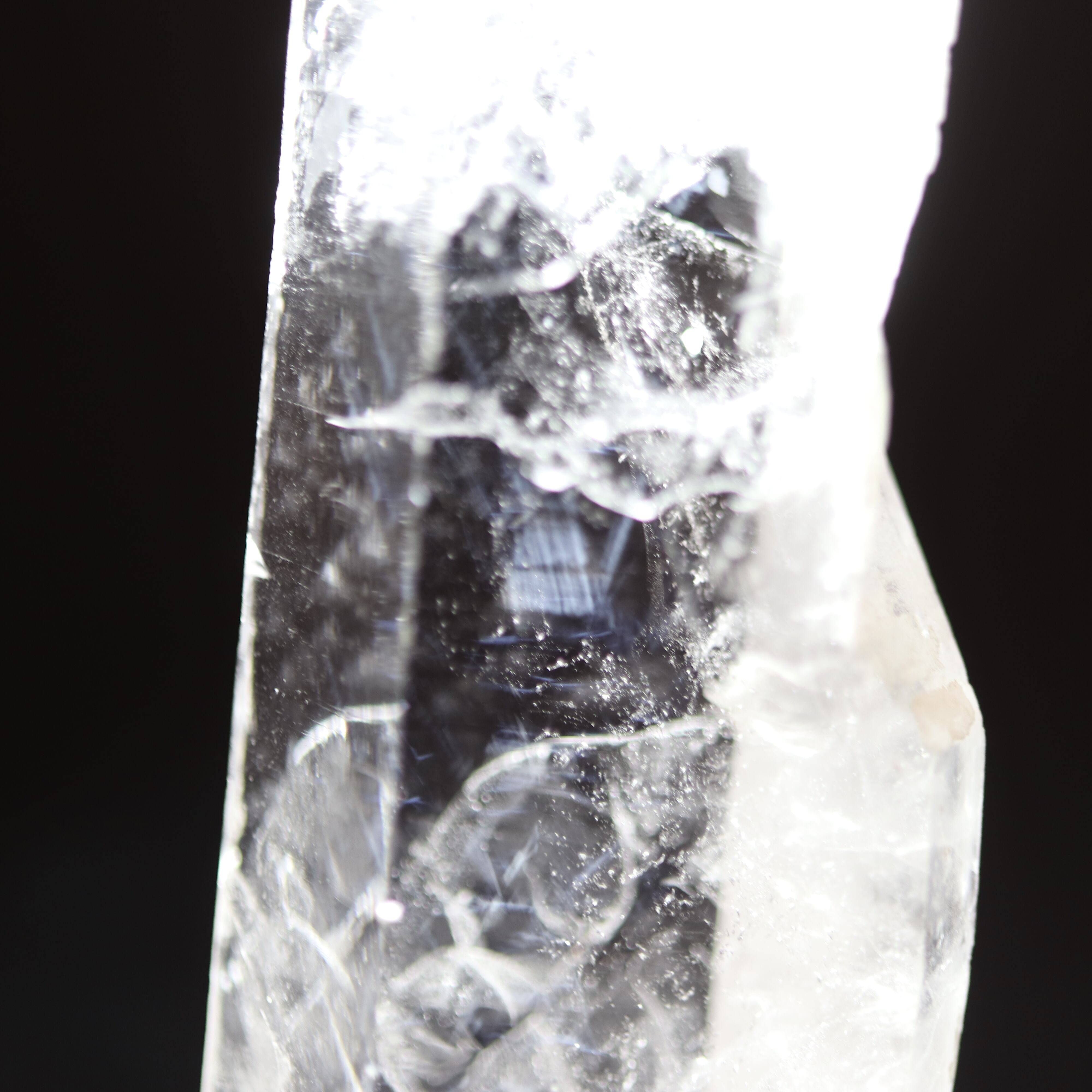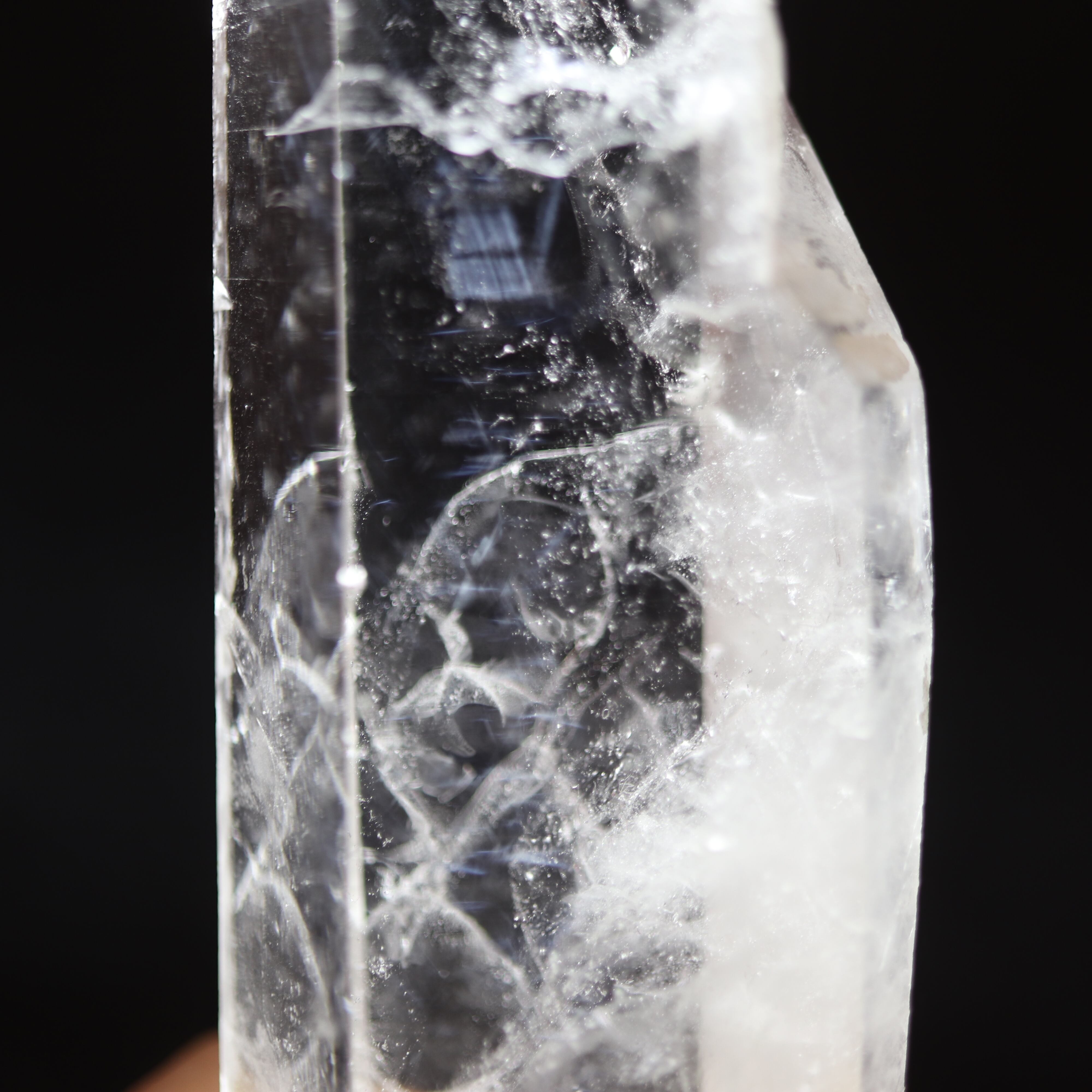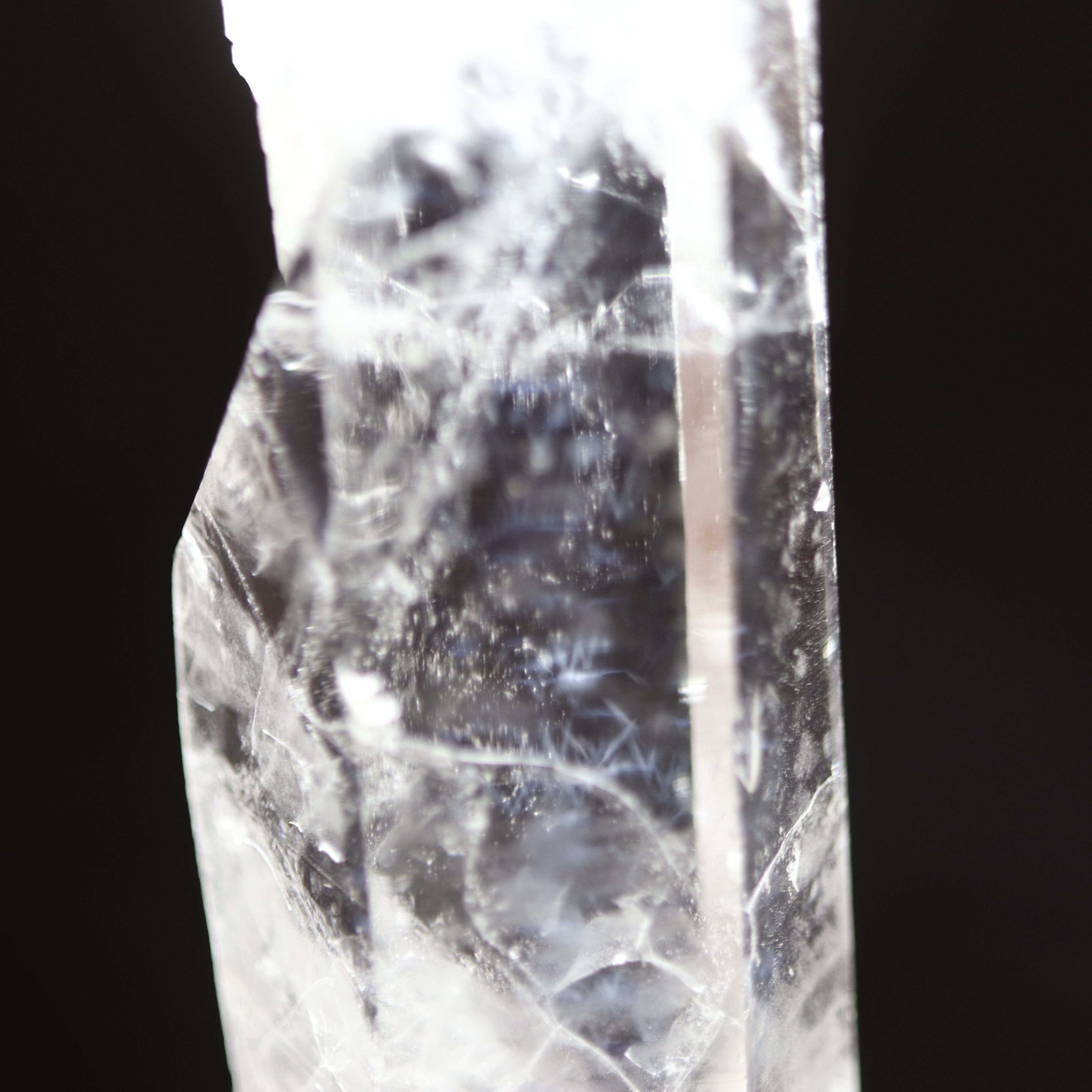エンジェルラダーは水晶の中に青白く光るシラーが入るもので、その模様から天使の梯子と呼ばれております。