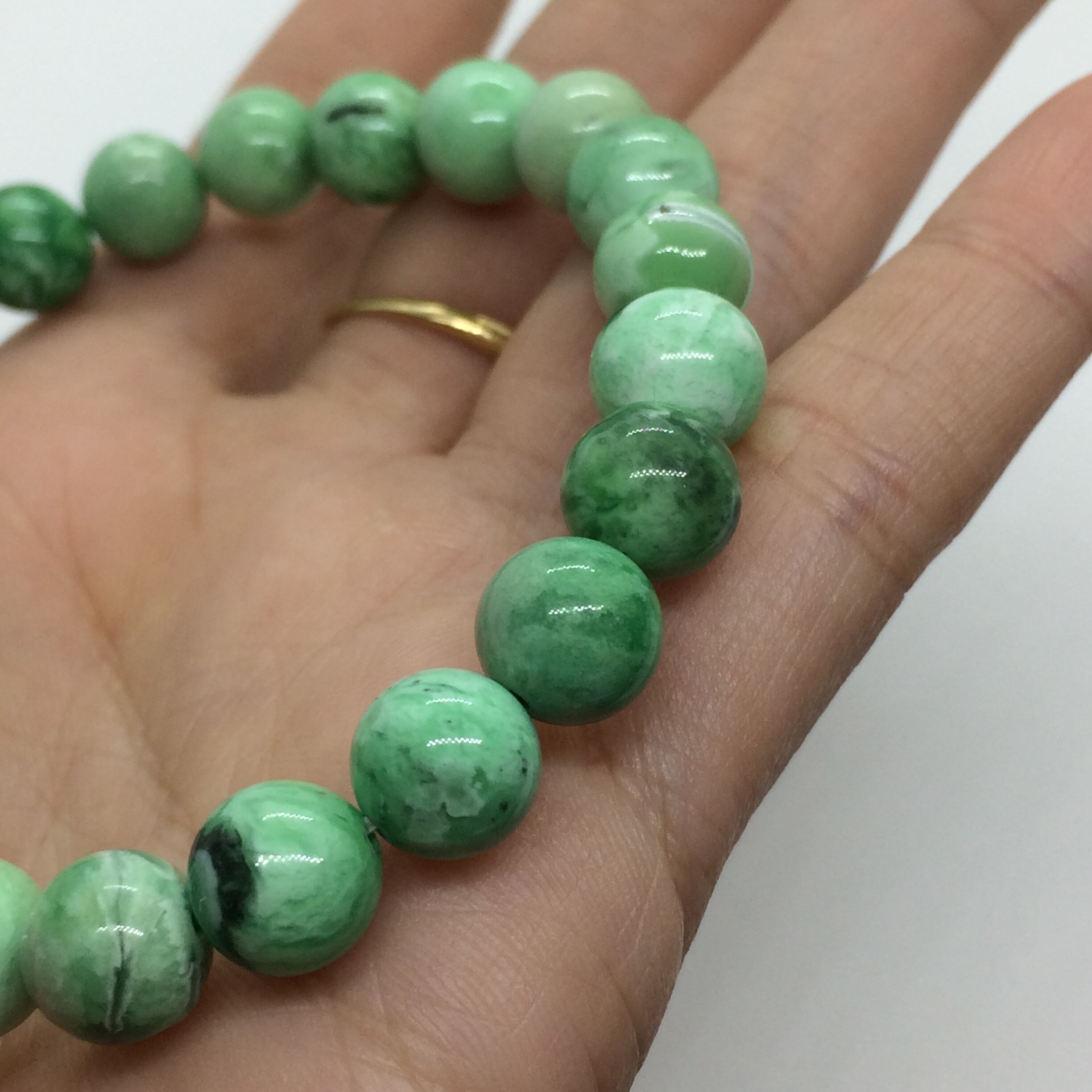 今回のAAAは明るい色味ですが、約10年前に採掘された、高品質の非常に希少な原石を特別にビーズ加工したものを入荷し、ブレスレットに組みました。