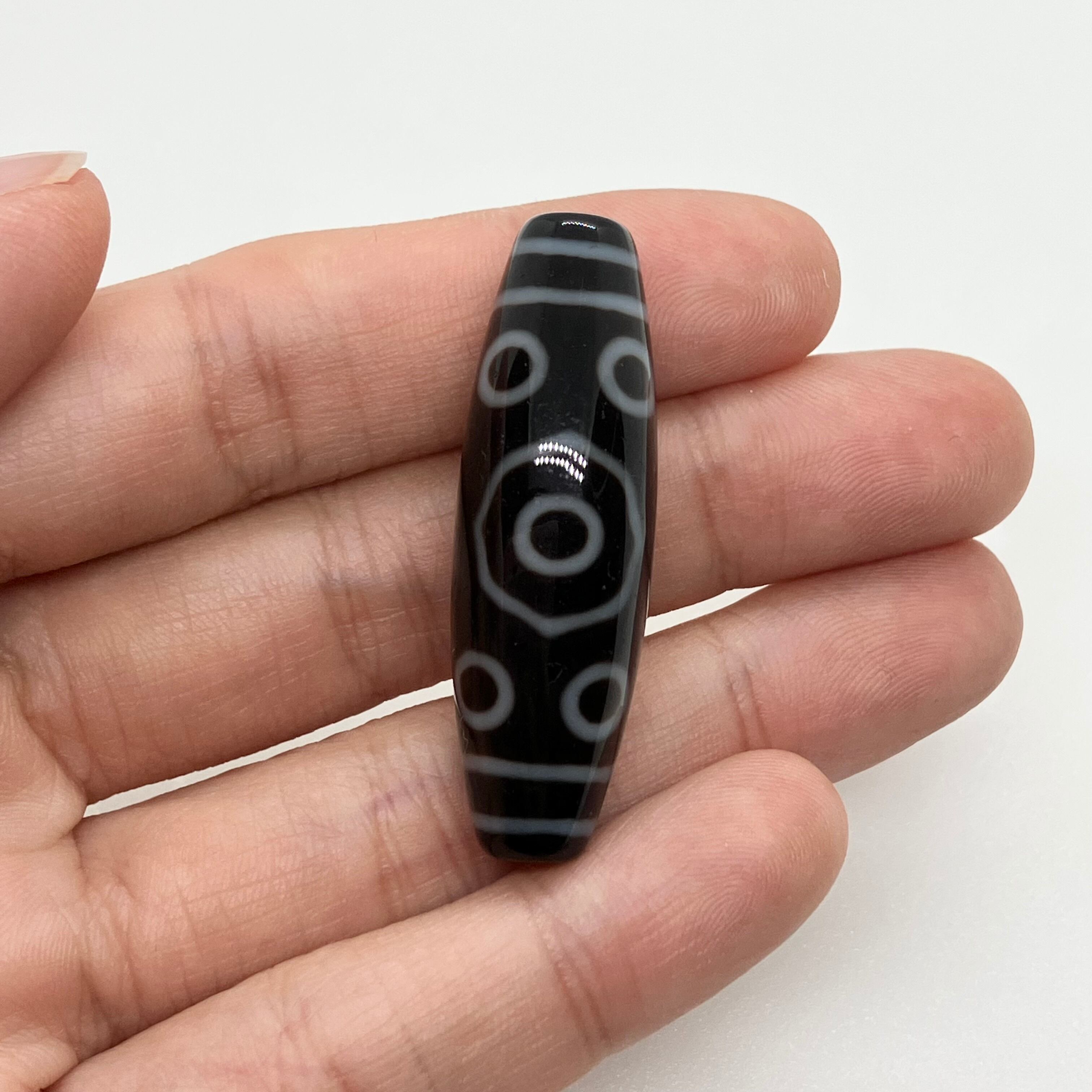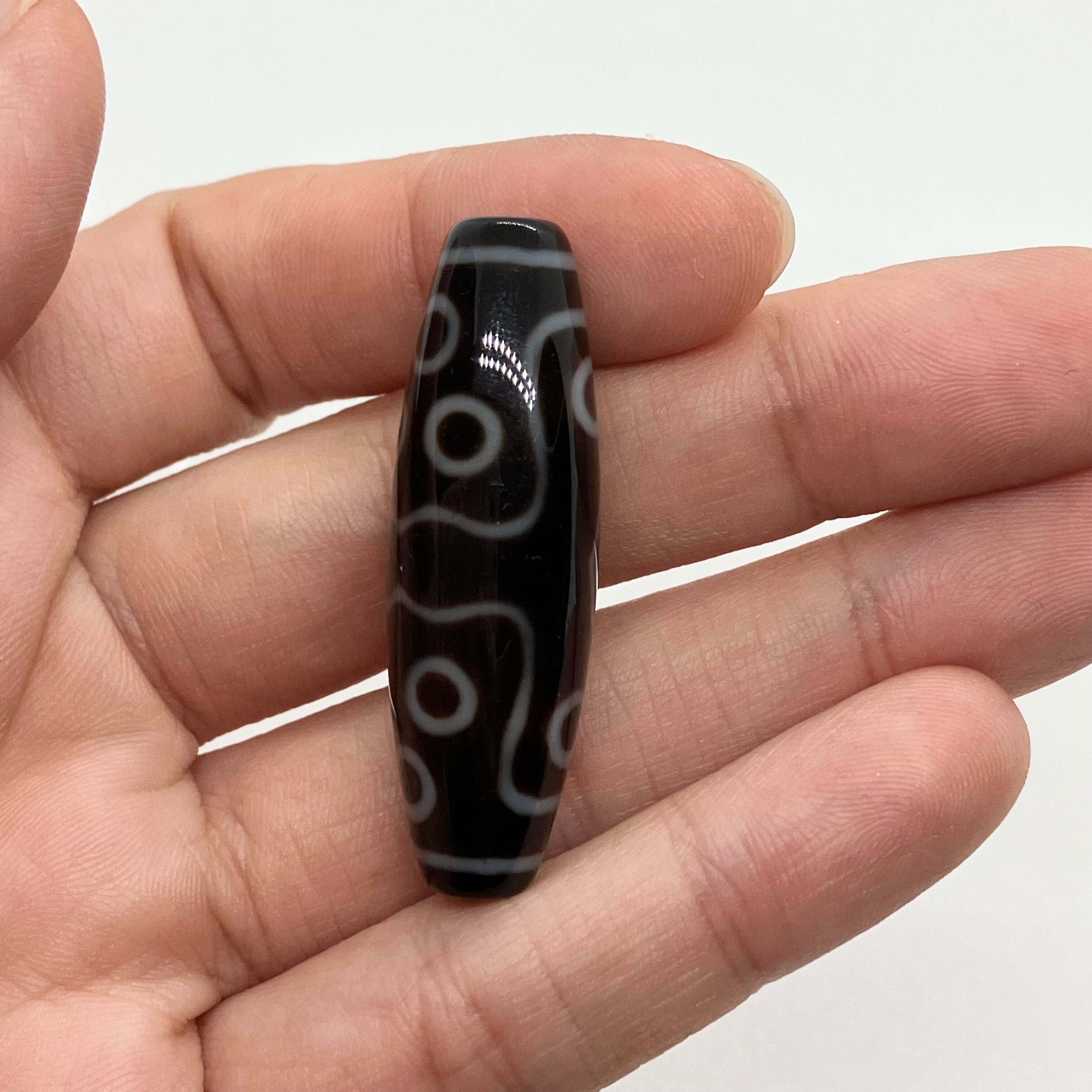 天珠とはメノウ、玉髄、カーネリアンなどを円筒形に加工したもので、約2500年以上前からチベットに伝わる聖なるお守り石です。