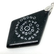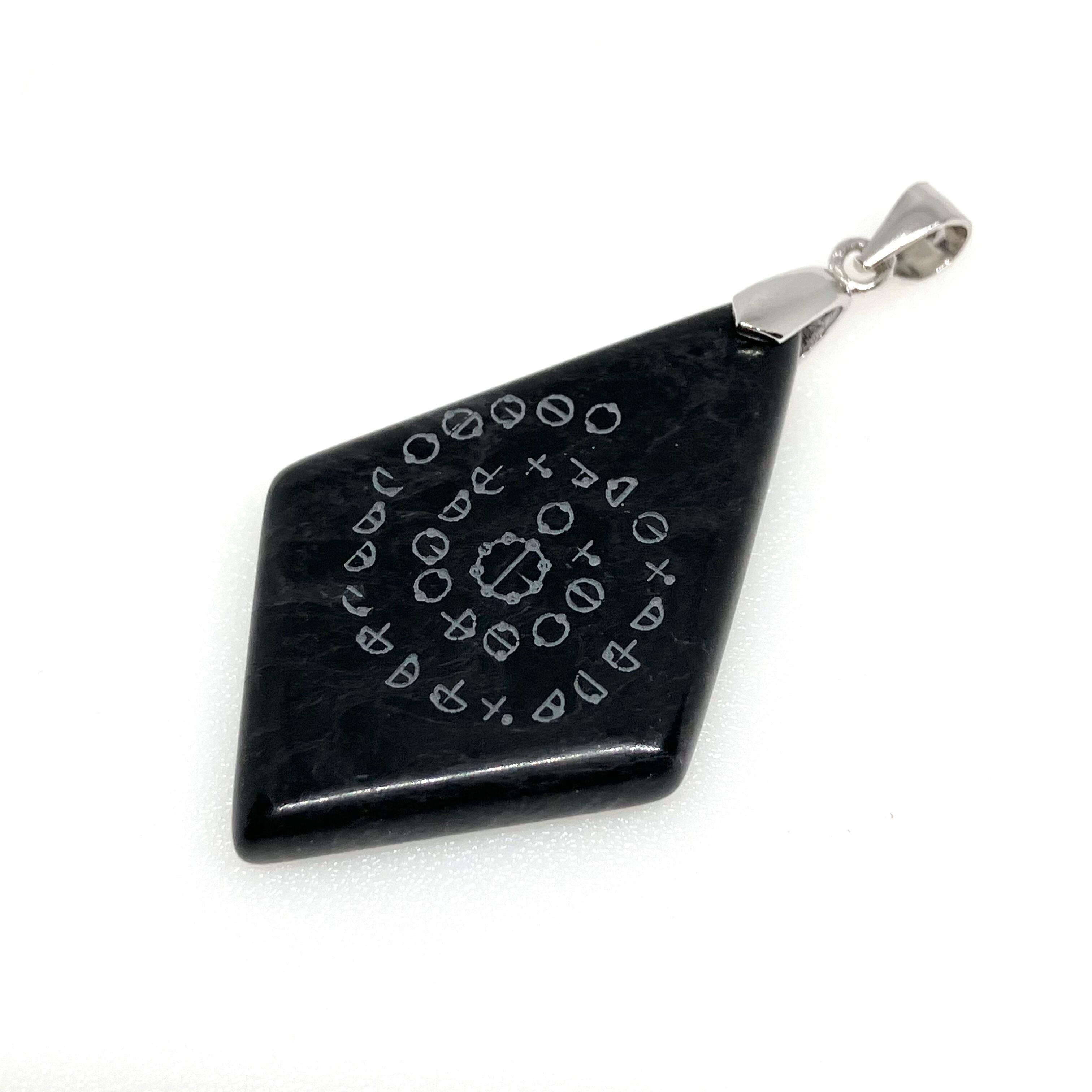 霊石とされる神居古潭石(カムイコタン)のひし形ペンダントにカタカムナが彫られた新商品が入りました。