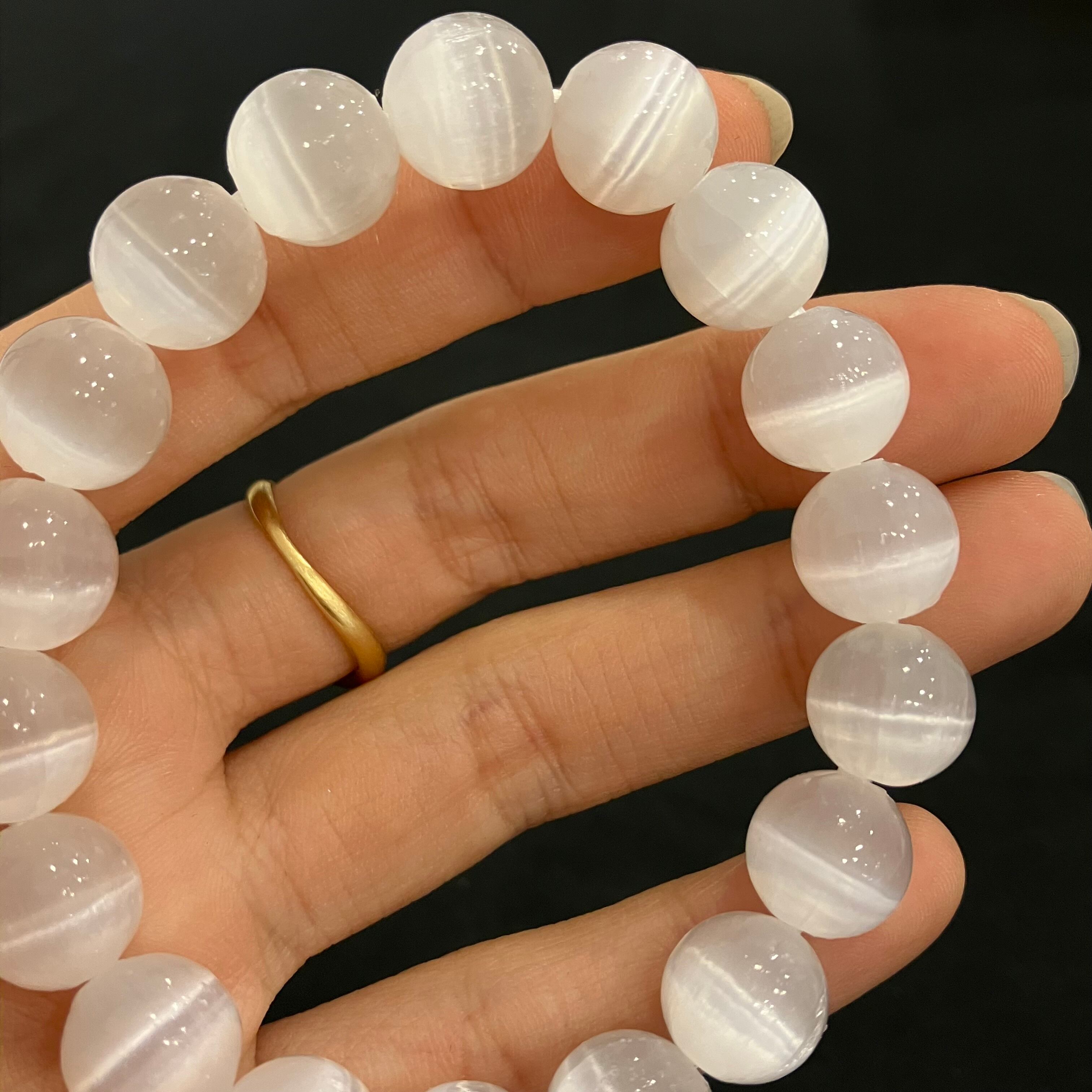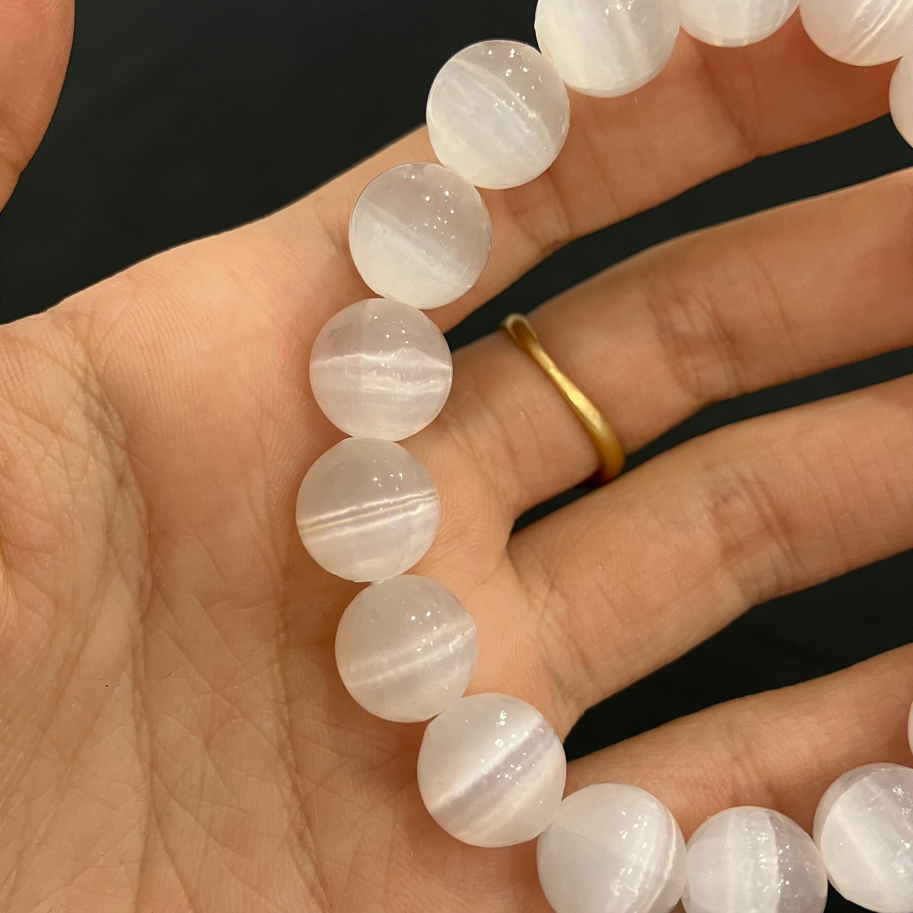 SA(最高ランク)のセレナイトを使用してブレスレットを制作しました。