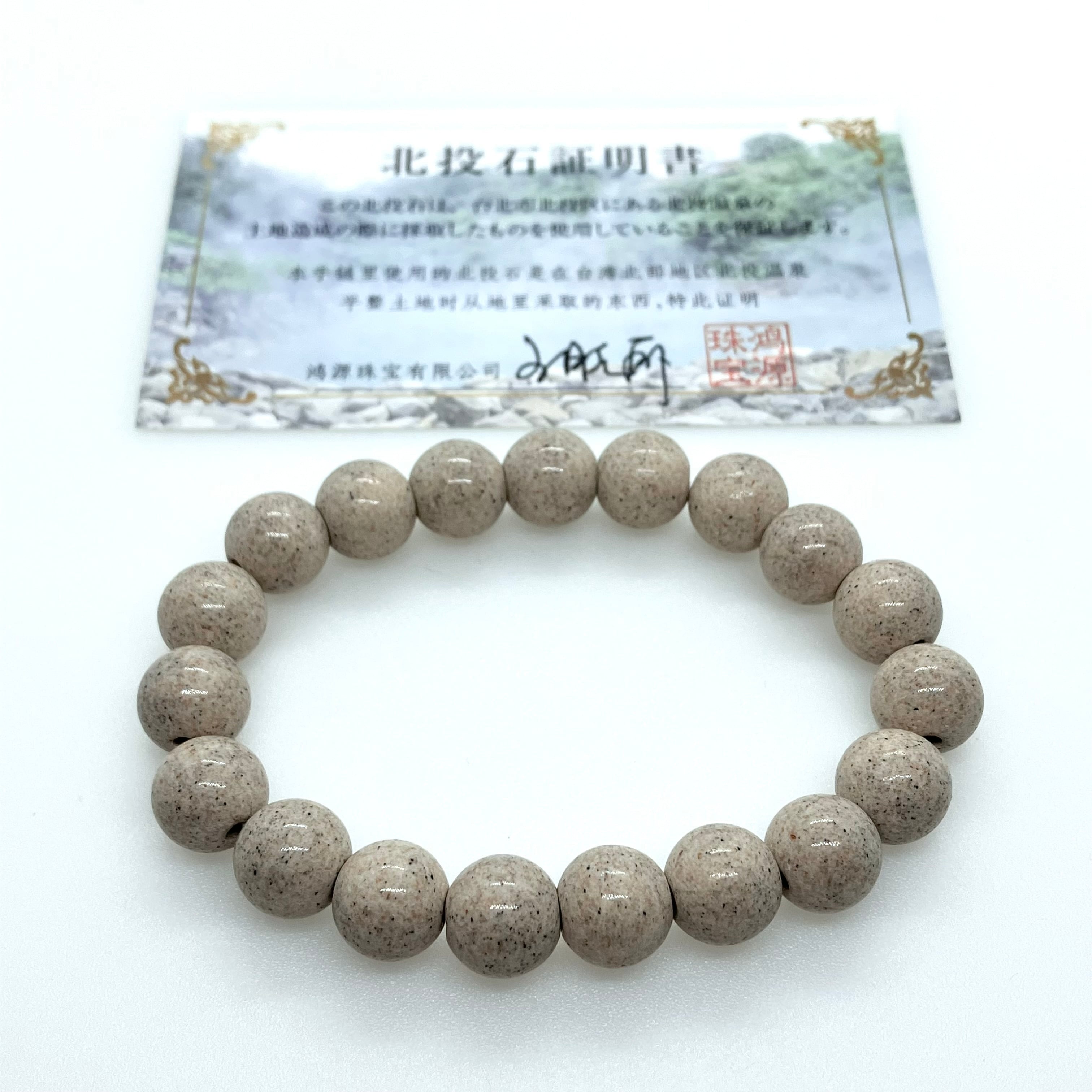 台湾の北投温泉、秋田県の玉川温泉でしか産出されない北投石の10mmブレスレットが入荷しました。